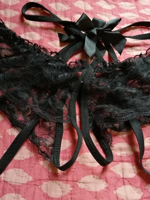 Комплект женского эротического нижнего белья, кружевные трусики с бантиком, с открытой промежностью, в черном и белом цвете