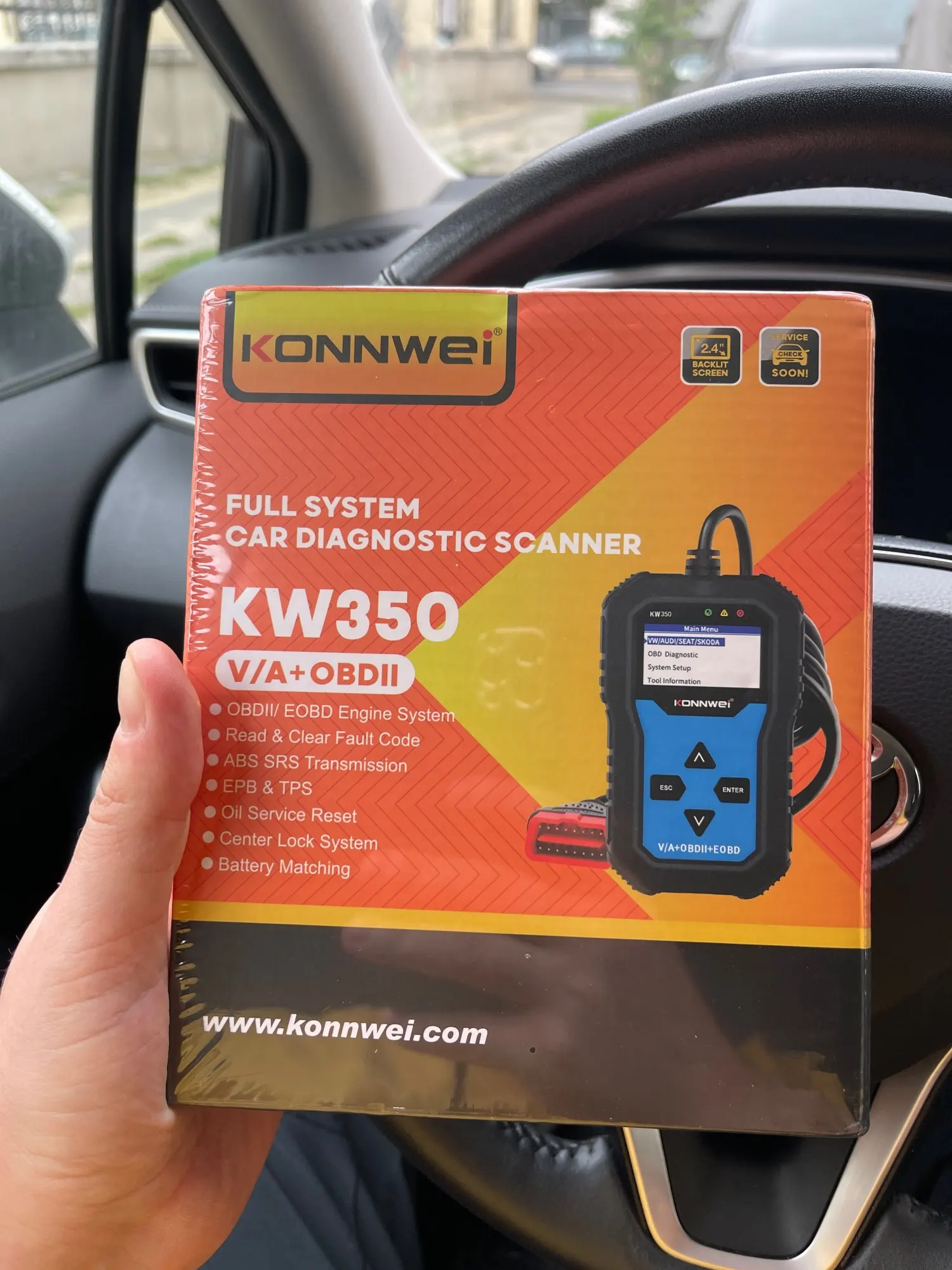 Мы в восторге от доставки! Из Китая в Латвию -- за 7 дней, включая таможню! Небывало! Дошёл в целости и сохранности, только уголок коробки немного примялся. Подключили сканер к машинке VW SHARAN 1.9 TDI 2001 года -- устройство работает, ошибки читает, но временами зависает и на нажатия кнопок не реагирует. Однако, пользоваться можно. Описанию соответствует. Только 2 языка: английский, германский. Продавец отработал безупречно, за что ему благодарны.