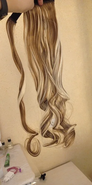 Отличный хвост,волосы очень похожи на настоящие.Блеска нет.