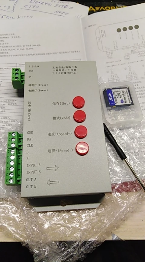 Контроллер T1000S 2048 пиксели DMX 512, SD-карта WS2801 WS2811 WS2812B LPD6803, Светодиодная лента DC5V 12V 24V RGB, полноцветный контроллер