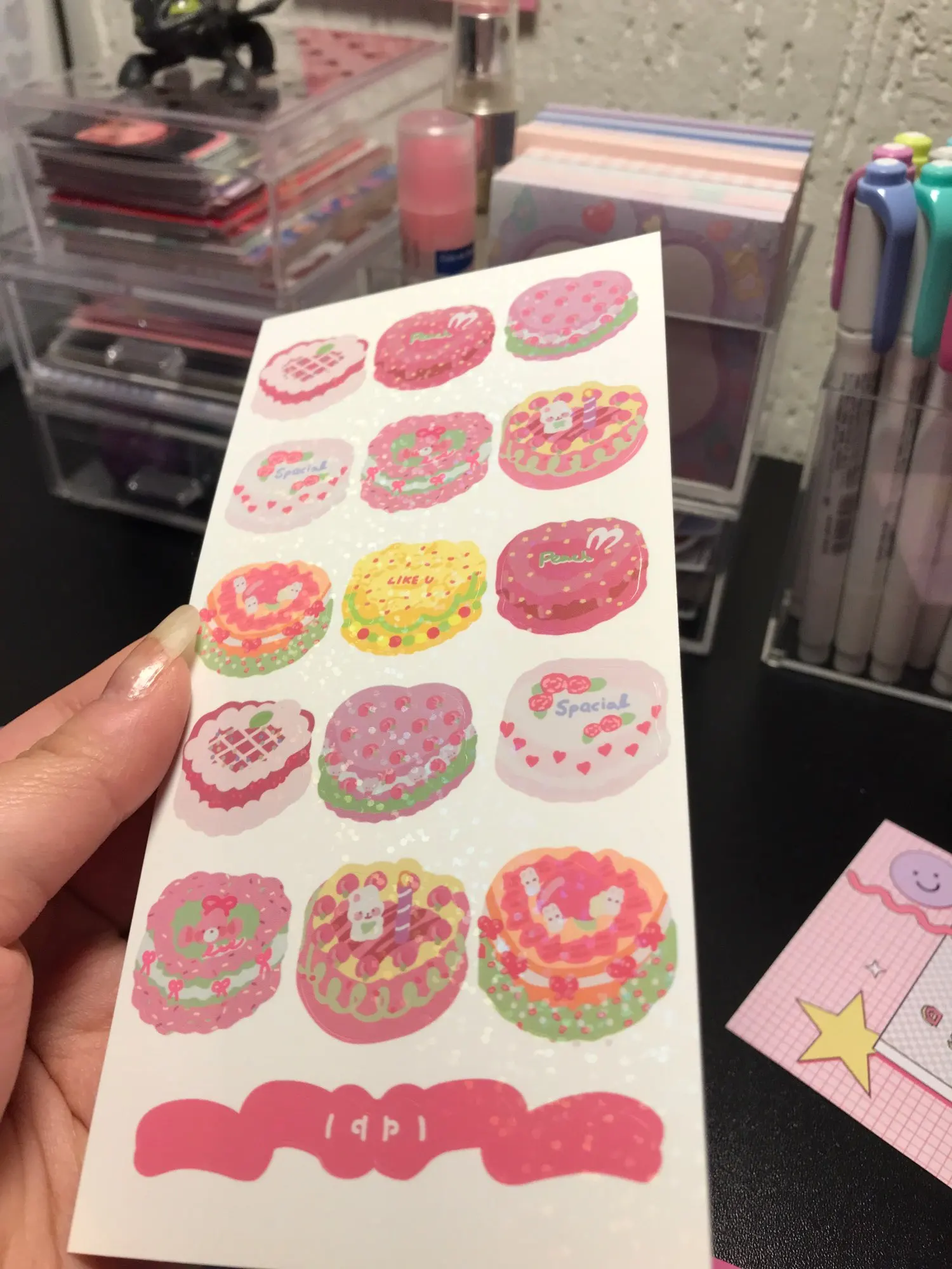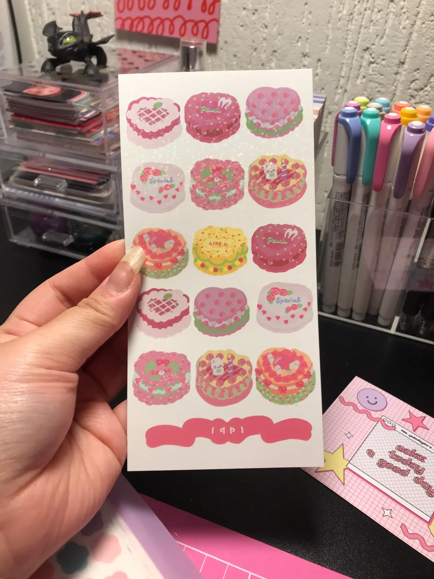 Корейский Ins розовый милый наклейки с изображением "Медведь", "Кролик", "торт разместить его девушка мобильный телефон записная книжка канцелярские Kawaii декоративные наклейки