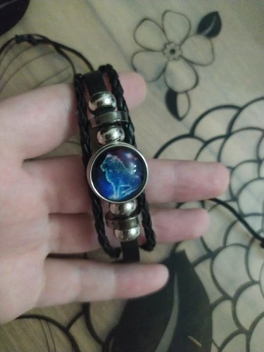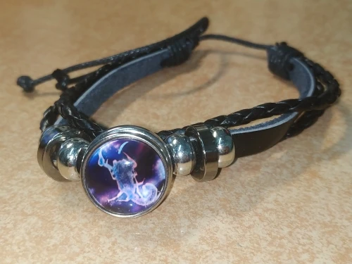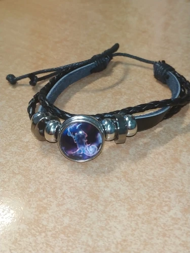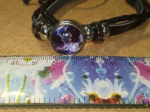 Кожаный браслет со стеклянным куполом и знаками Зодиака, 12 дюймов