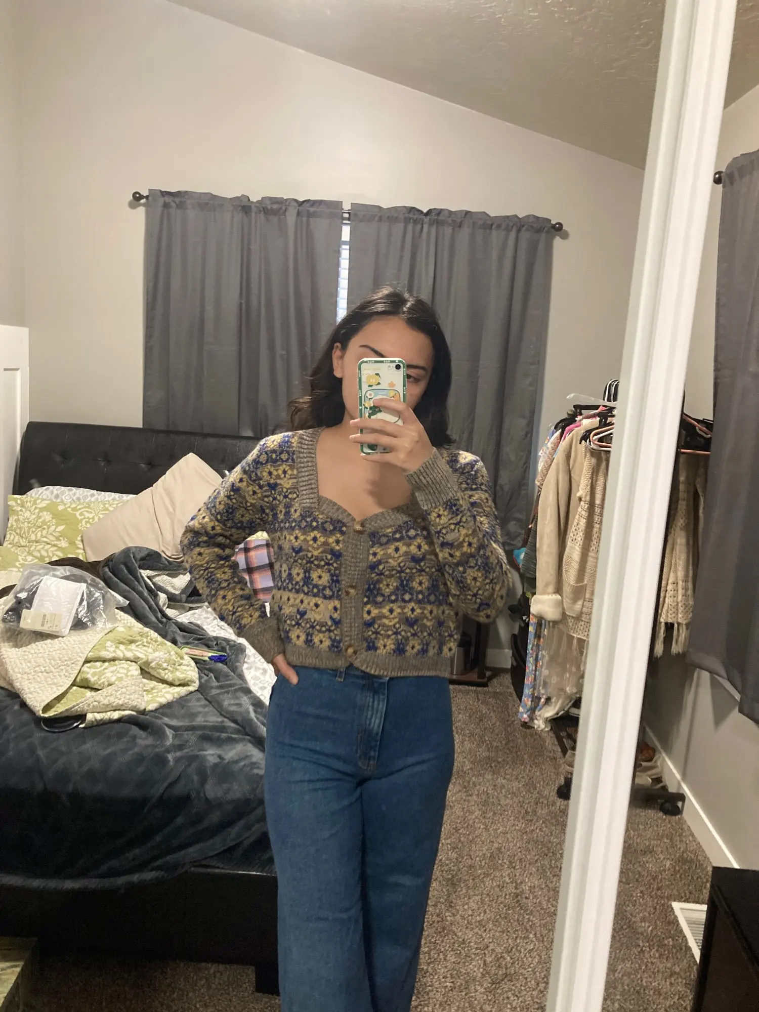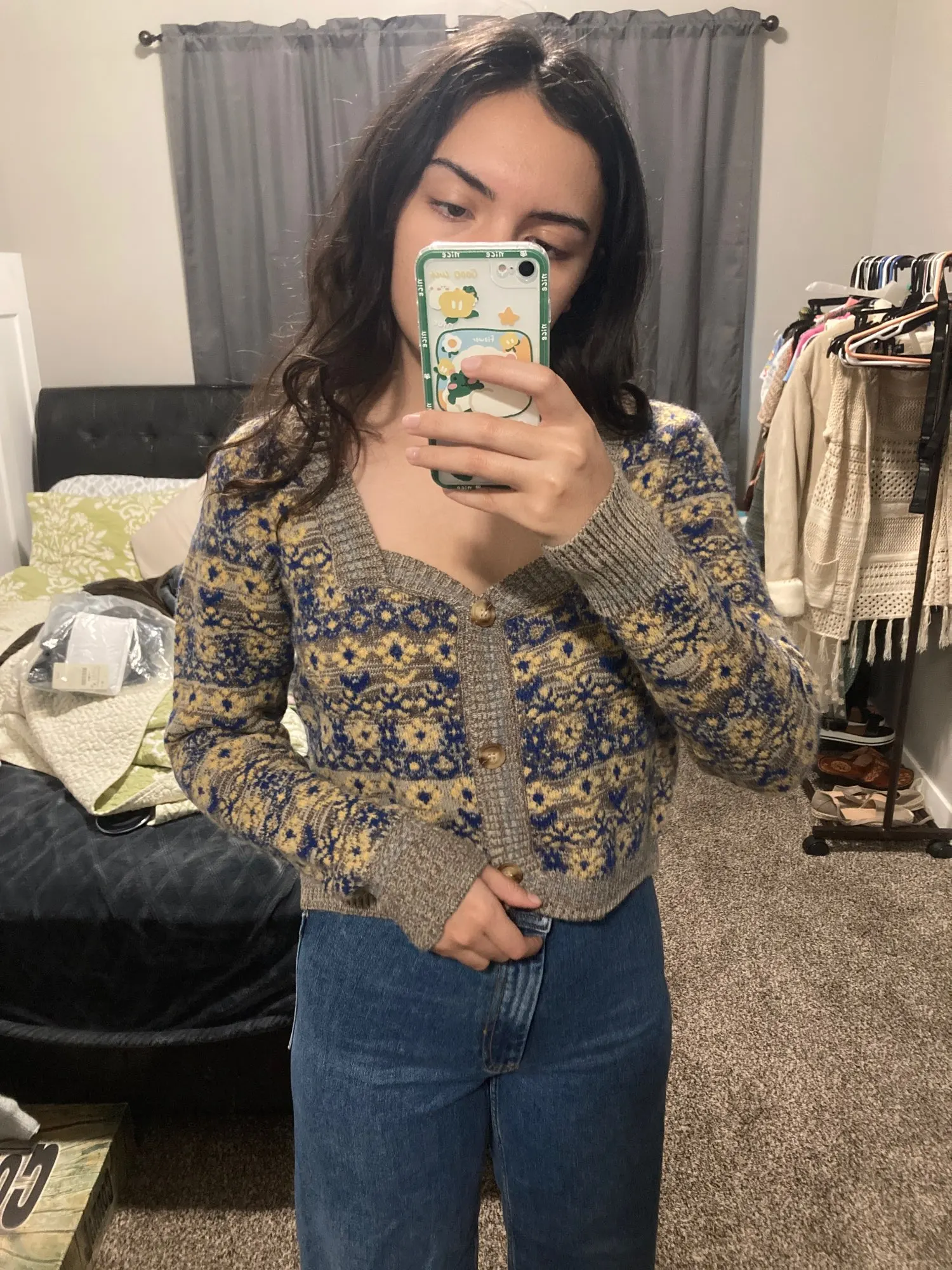 KPYTOMOA женский 2022 модный жаккардовый укороченный вязаный кардиган свитер винтажный с длинным рукавом на пуговицах женская верхняя одежда шикарные топы