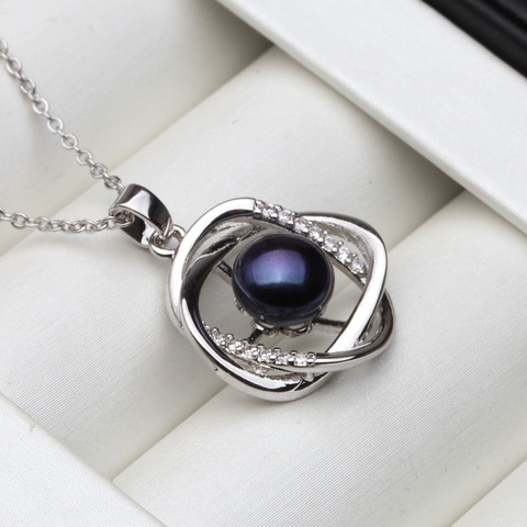 Красивая женская подвеска из стерлингового серебра 925 пробы, свадебное черное ожерелье из натурального пресноводного жемчуга, подарок на помолвку