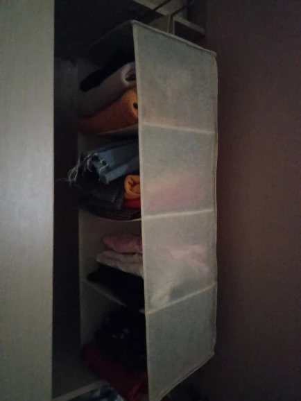 Кривоватые ящики, хотя сама хранилка хорошая, без нареканий. Могли бы и постараться поровнее сделать, но, в принципе, мой шкаф обычно закрыт, а когда нужно быстро найти одежду, то красота – вообще последнее, о чём задумываешься (тем более шкаф на съёмной квартире и так стрёмный, никак не исправишь)) Так что сойдёт и так) Материал довольно качественный, порваться ничего не должно. Липучка нормальная, выдерживает пока весь тяжкий груз в виде зимней одежды. Надеюсь, что и дальше так будет.