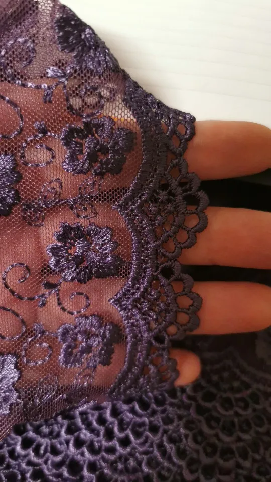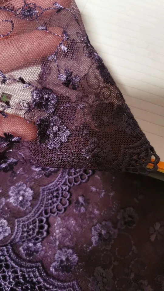 Цвет более темный,ближе к сливовому, кружево мягкое на сетке.