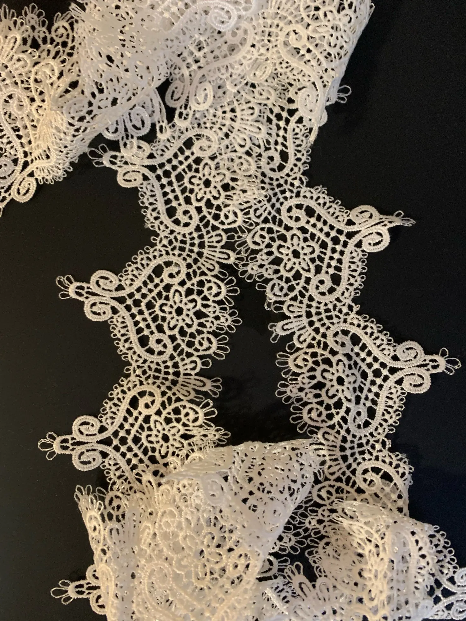 Хорошее кружево, но нитки при плетении часто засучивались, и эти обрывы портят вид. Буду отстригать.