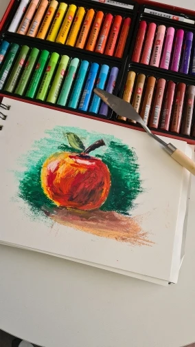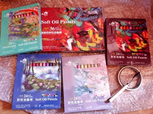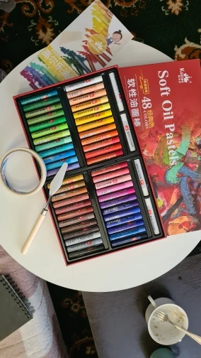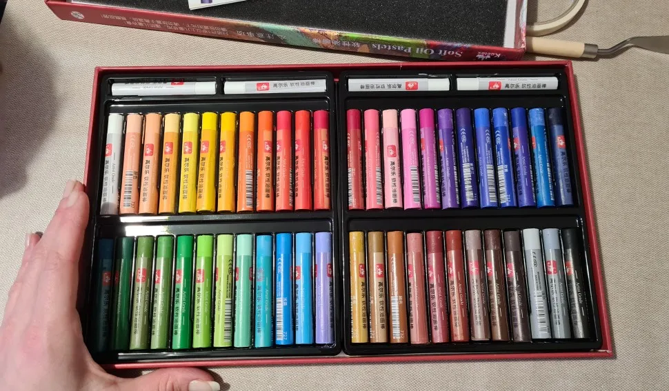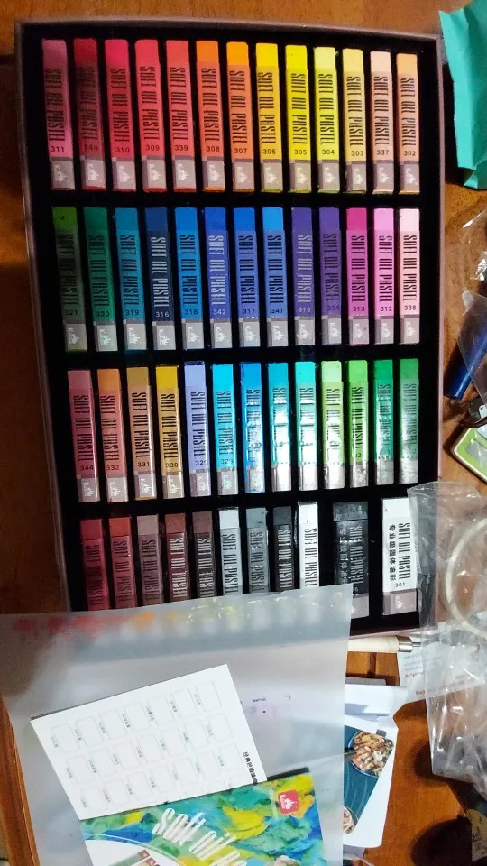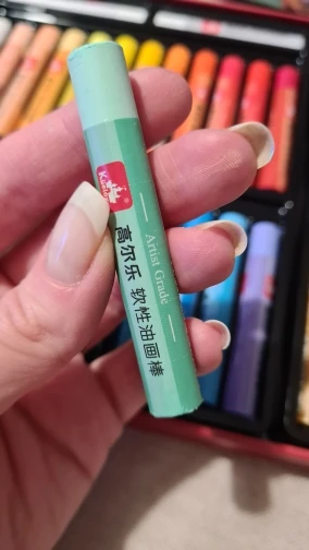 Пастель отличная. Размер как у ван Гога. Мягкость как у мунгё. Укрывистая. Брала набор 36+2 (получилось 3 белых мелка в наборе). Хорошие оттенки, все разбелённые, мягкие. Есть 3 неоновых цвета-похржи на текстовыделители. Цвета редкие, как дополнительный набор пастели, справляется отлично. Размывается водой. Пастель оставляет липкий след в работе.