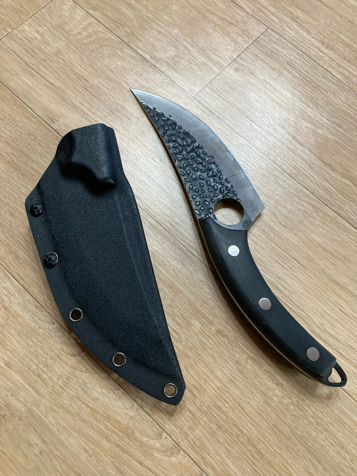 Нож хороший! Удобно лежит в руке.Увесистый.Брал только для мяса.Единственый недостаток это что ручка ножа не очень хорошо обработана.Но с помощью наждачной бумаги это поправимо.Вообщем рекомендую к покупке.