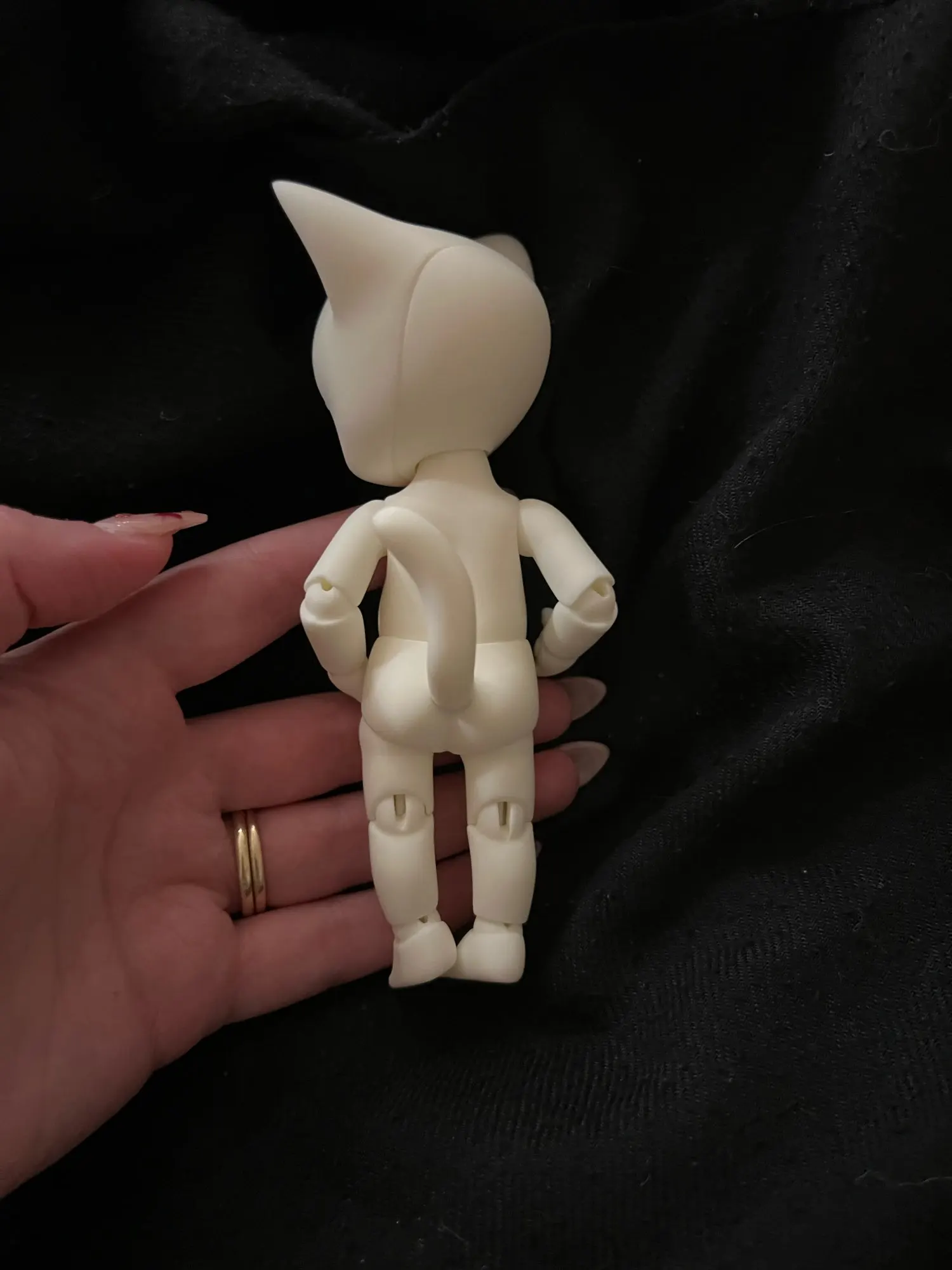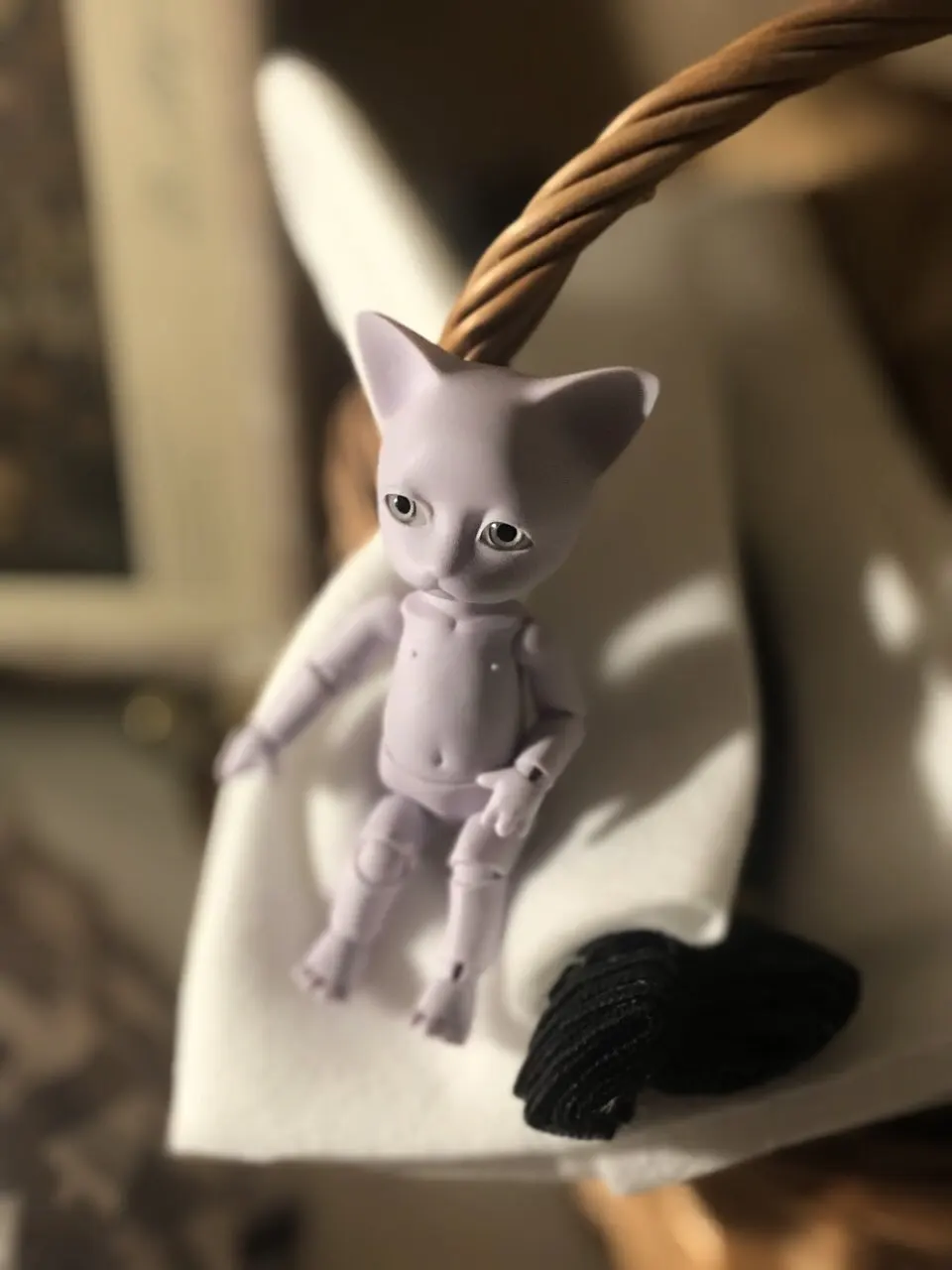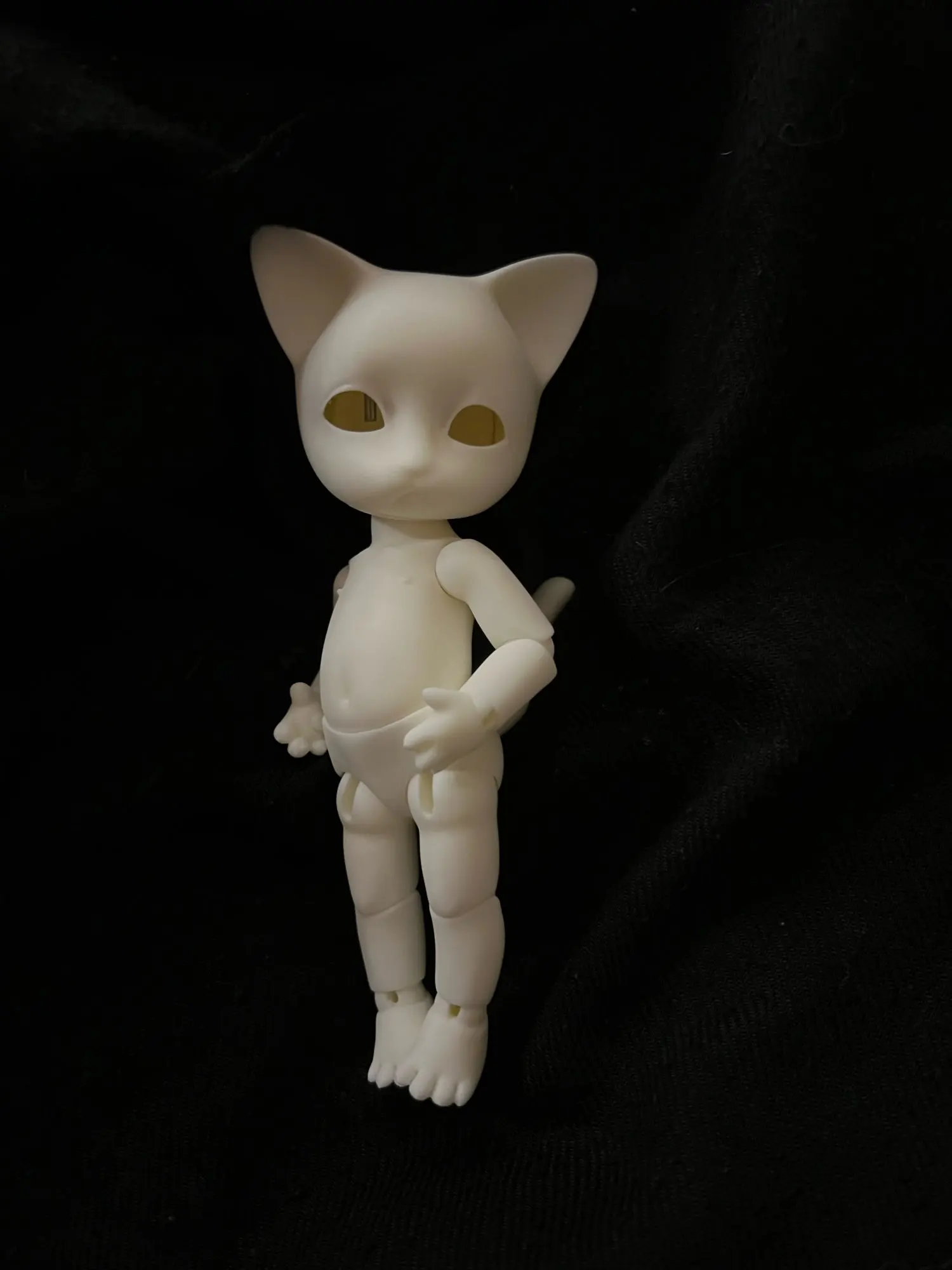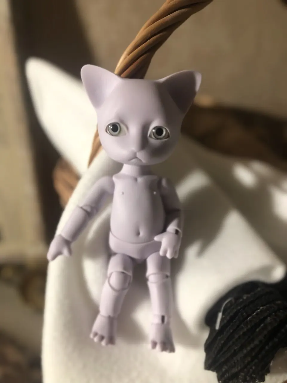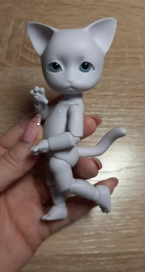 Котёнок просто бомбический. Невероятно приятный ребенок, тискательный. Лапки милые, с подушечками и коготками, подвижность хорошая. Из отрицательного - перетянута безбожно. Ножки выровнять невозможно, сжимаются сразу. Вот это расстроило.