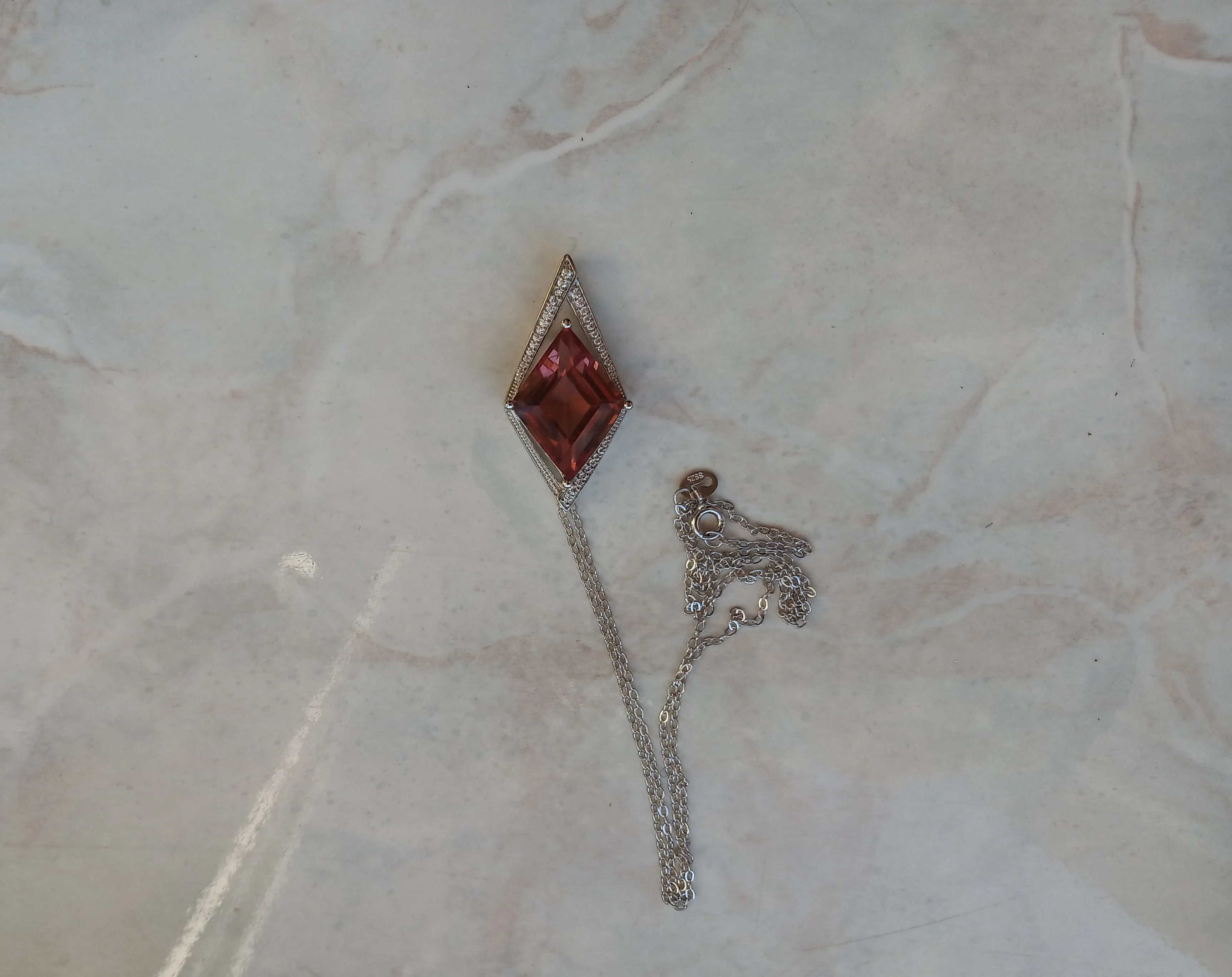 Не ожидала, что кулон будет такой большой! Он просто великолепен! У меня есть серьги с султанитом из этого магазина, брала специально под них. Доставка всего две недели. Магазин и товар рекомендую.