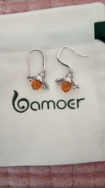 [Купон $15 скидка $3] BAMOER Лидер продаж, Настоящее серебро 925 пробы, милые серьги-капельки с изображением оранжевой пчелы, животных для женщин, из...