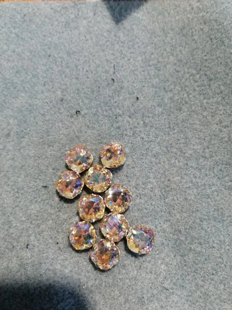Кристаллы хорошенькие, не битые, не царапанные. На одном по центру незначительный брак. В оправах сидят крепко и сами оправы приличного качества. Но цвет фото продавца не полностью соответствует, в реальности цвет тусклее и намного холоднее. Но красивые. Общая оценка качества - твёрдая 4. Заказала 12 декабря, получила 31 декабря.