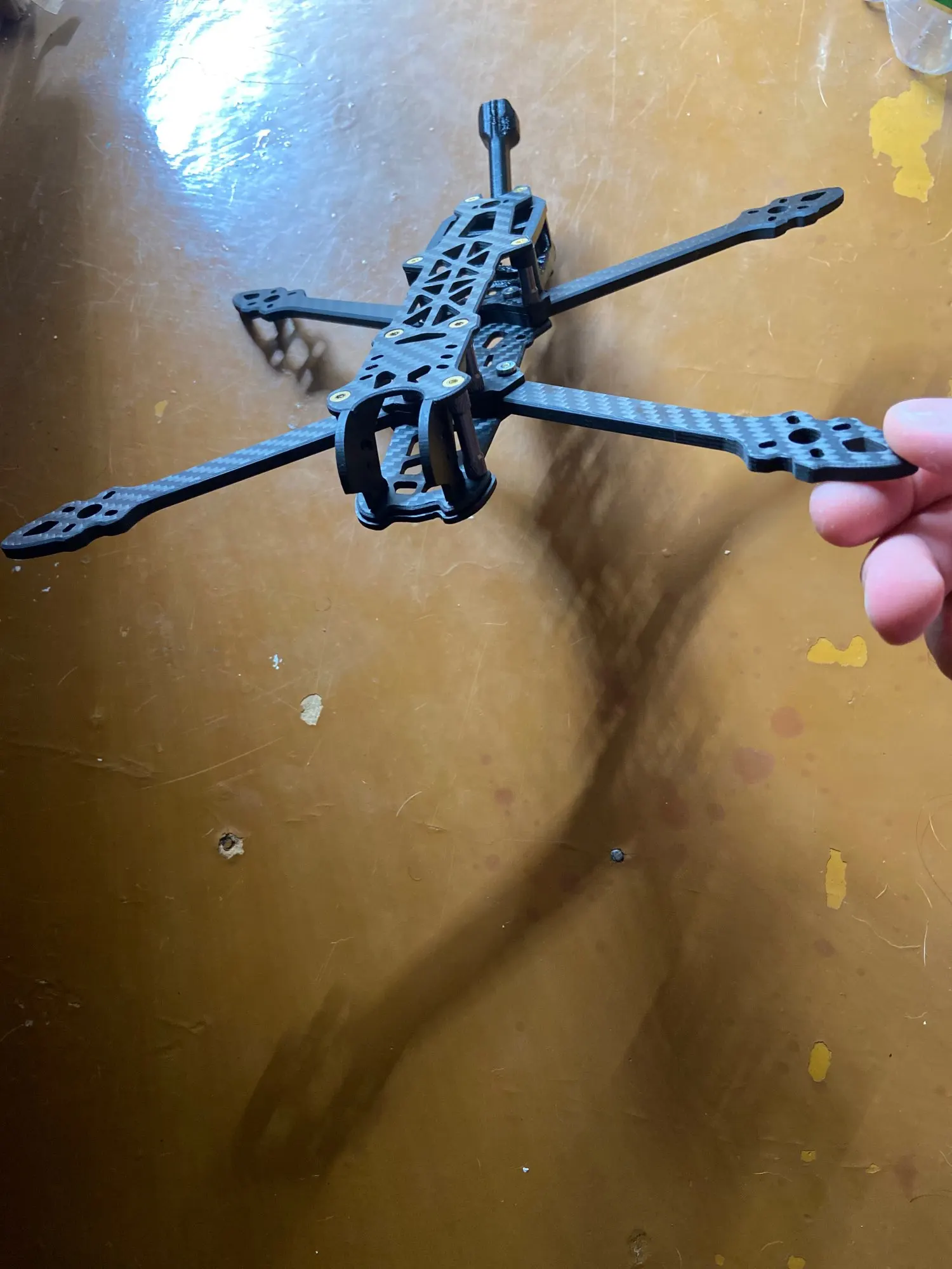 Отличная рама. Фаски сняты, лучи жесткие- толщиной 5 мм. Фюзеляж длинный: можно разместить все необходимое.