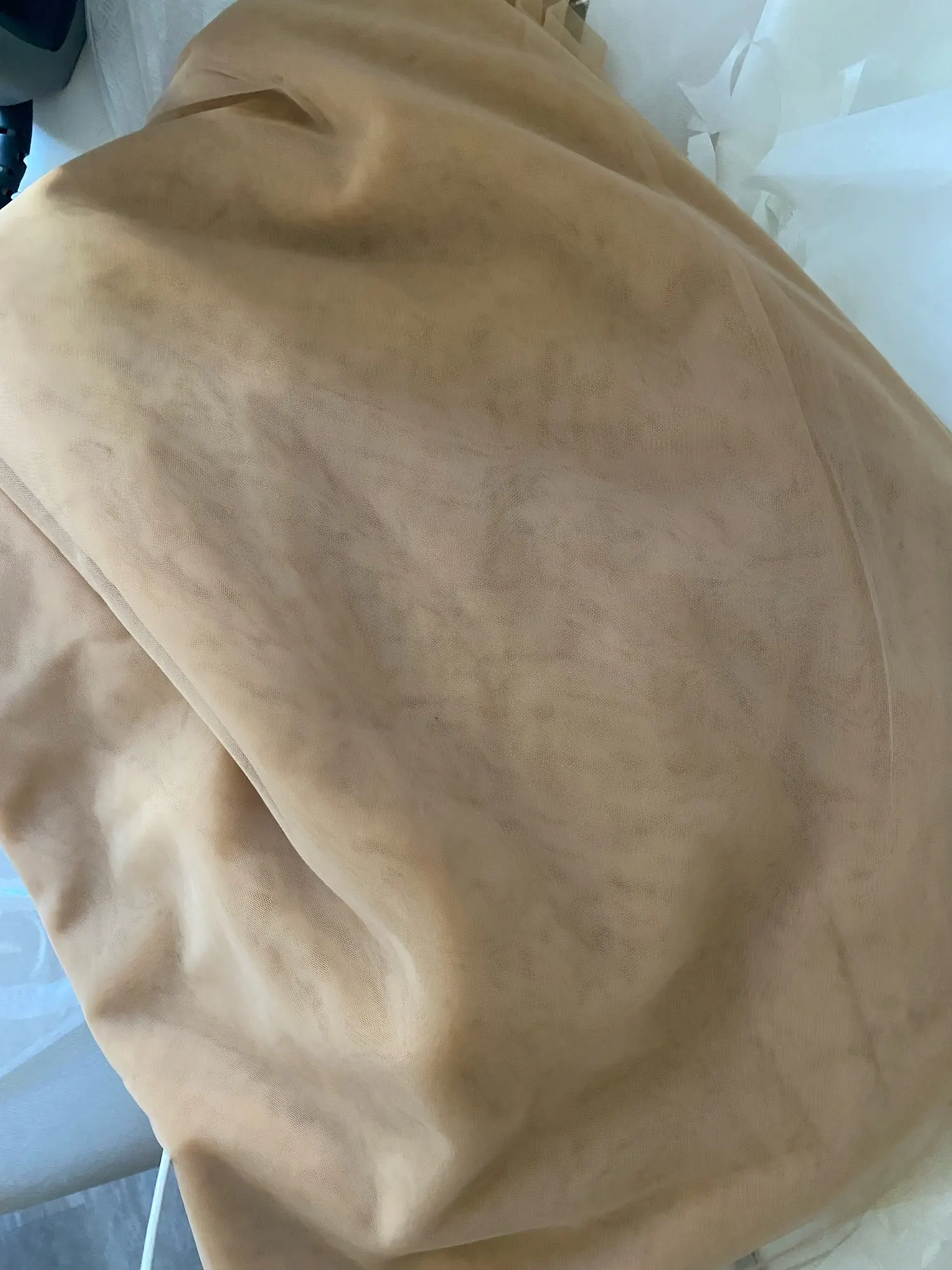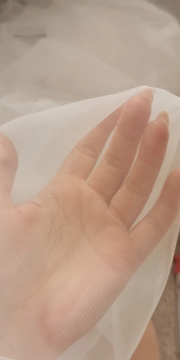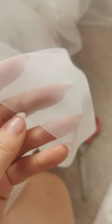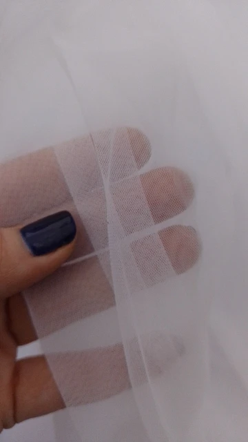 Фатин оказался достаточно плотным. Сетка очень очень мелкая из-за этого ткань менее прозрачная чем ожидалось. Так же имеет маленькое растяжение по одной стороне, а по второй вообще не тянется.