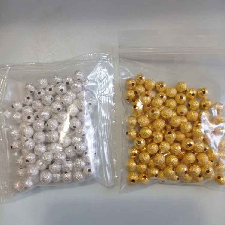 Латунные металлические круглые бусины 4/6/8/10 мм, серебристого и золотистого цвета, матовые бусины, фурнитура для ювелирных изделий ручной ра...