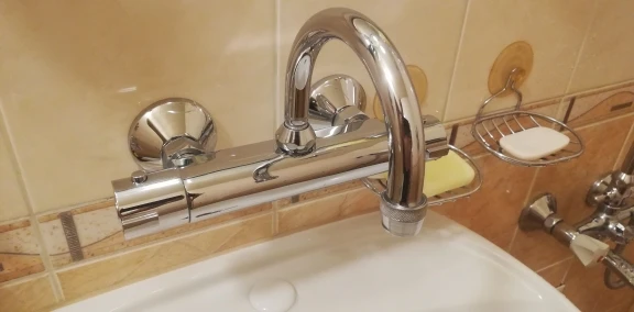 Отлично. Смотрится богато.) У меня горячая вода справа, перевернул, поставил девиатор, получился смеситель с душем и открывалка справа. В наличии адаптер на 1/2. Эксцентрики качественные!