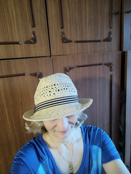 Шляпа реально красивая-очень качественно сделана и аккуратно, мне понравилась, единственное но-она из бумаги а не из соломки, и поэтому надо очень осторожно ее носить-уж точно не в дождь, неизвестно выдержит ли она воду-даже не хочу проверять.