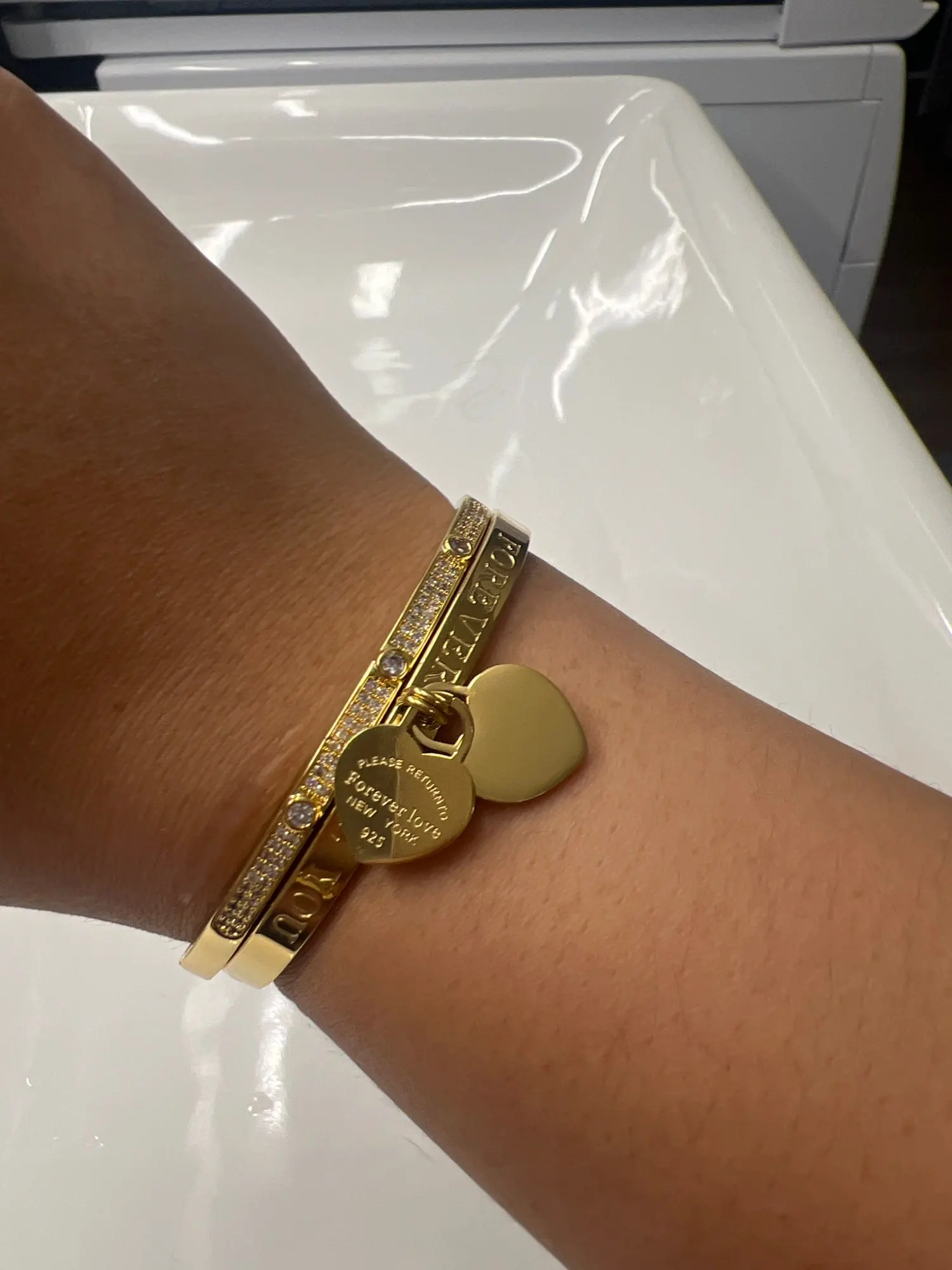 Лидер продаж, классические золотистые браслеты из нержавеющей стали, тонкие женские браслеты с двойным персиковым сердцем
