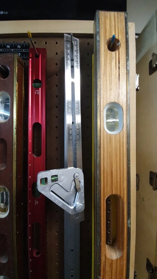 Линейка тонкая, с вмятинами или дефектами при литье. Фиксаторы слабые, при этом сразу возникли потертости на шкале. Треугольный блок - порошковое литьё, ручка фиксатора - очень легкий и хрупкий пластик. Уровни - ни о чем, просто пузыри в воле. В общем дёшево за дорого.