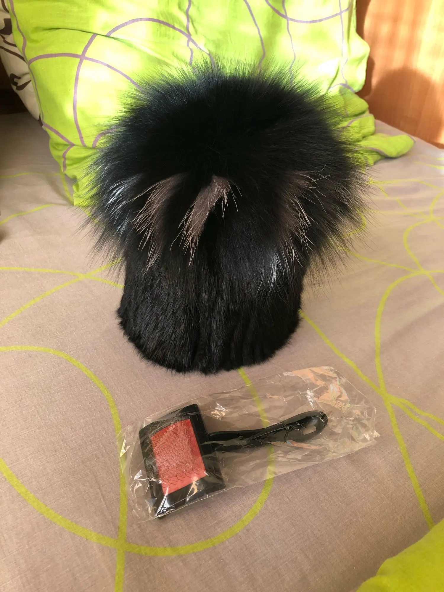 очень хорошая шапка.отслеживалась.мех мягкий,несыпался.расчески в подарочек.советую