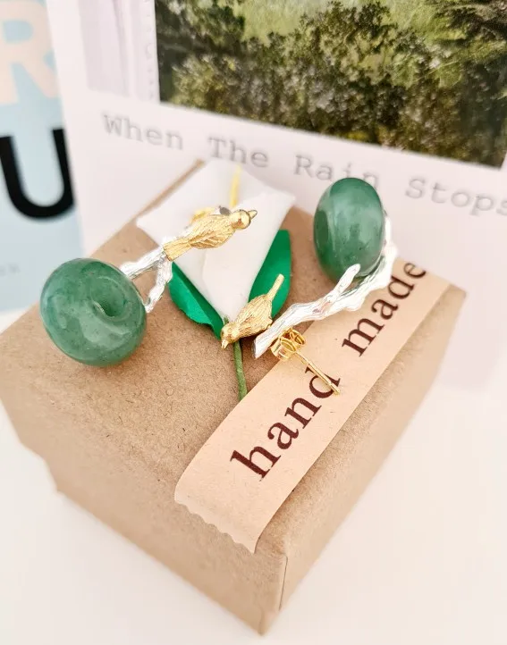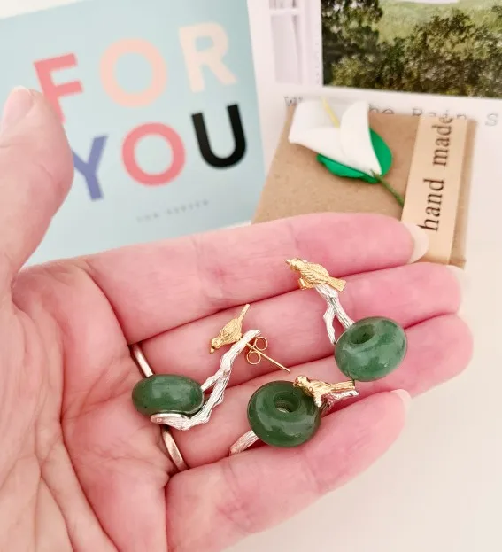 Lotus весело Настоящее стерлингового серебра 925 натуральный камень творческий ручной Fine Jewelry прекрасная птица Висячие серьги для женщин brincos
