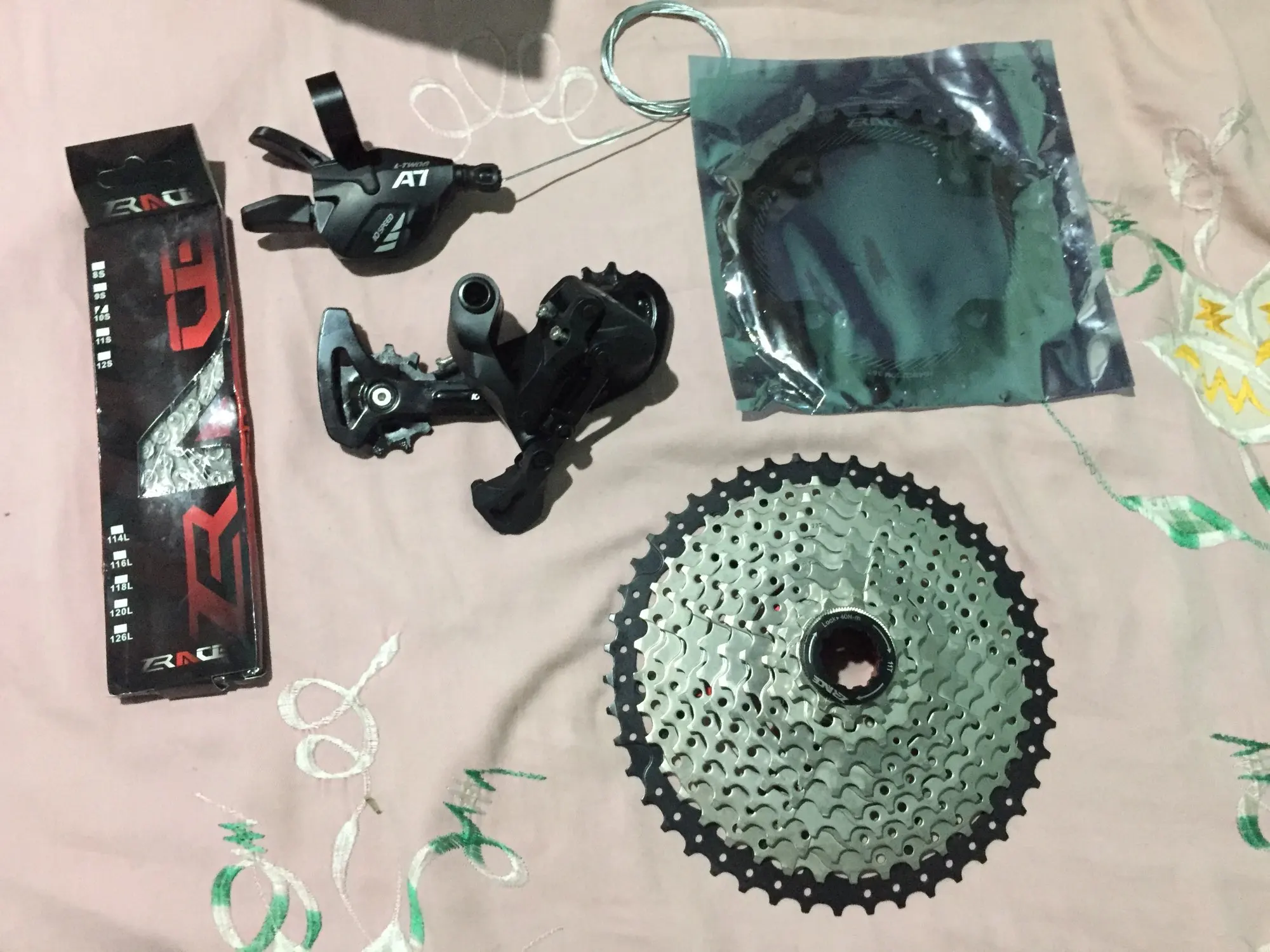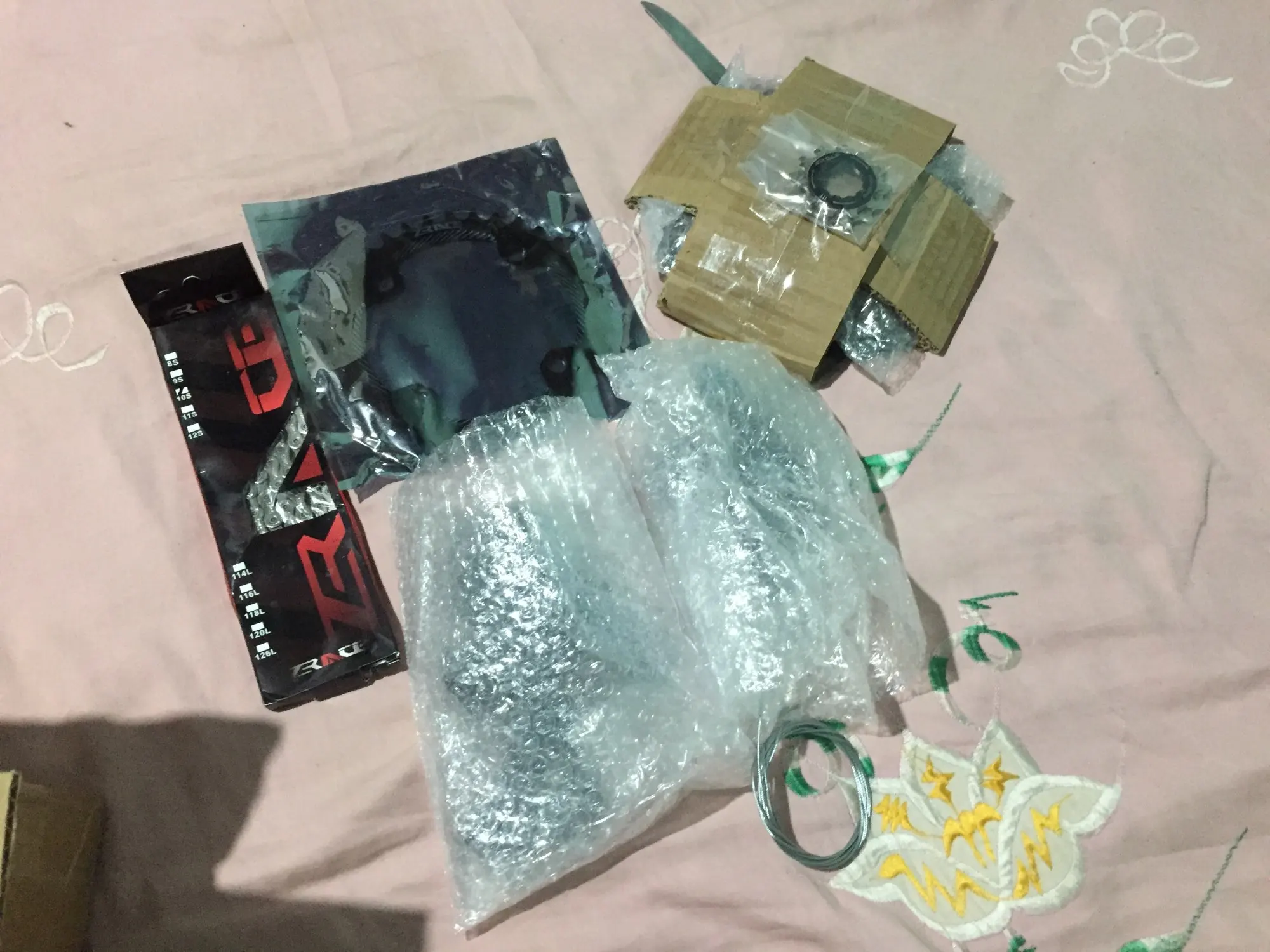 приехало быстро упакованно хорошо,задний переключатель на втулках подшипников нет, кассета села нормально а вот три наборные звёзды не одевались пришлось напильники подпиливать потом отнесли на шлифовку тогда сели, может брак, прадовец на сообщения не отвечает