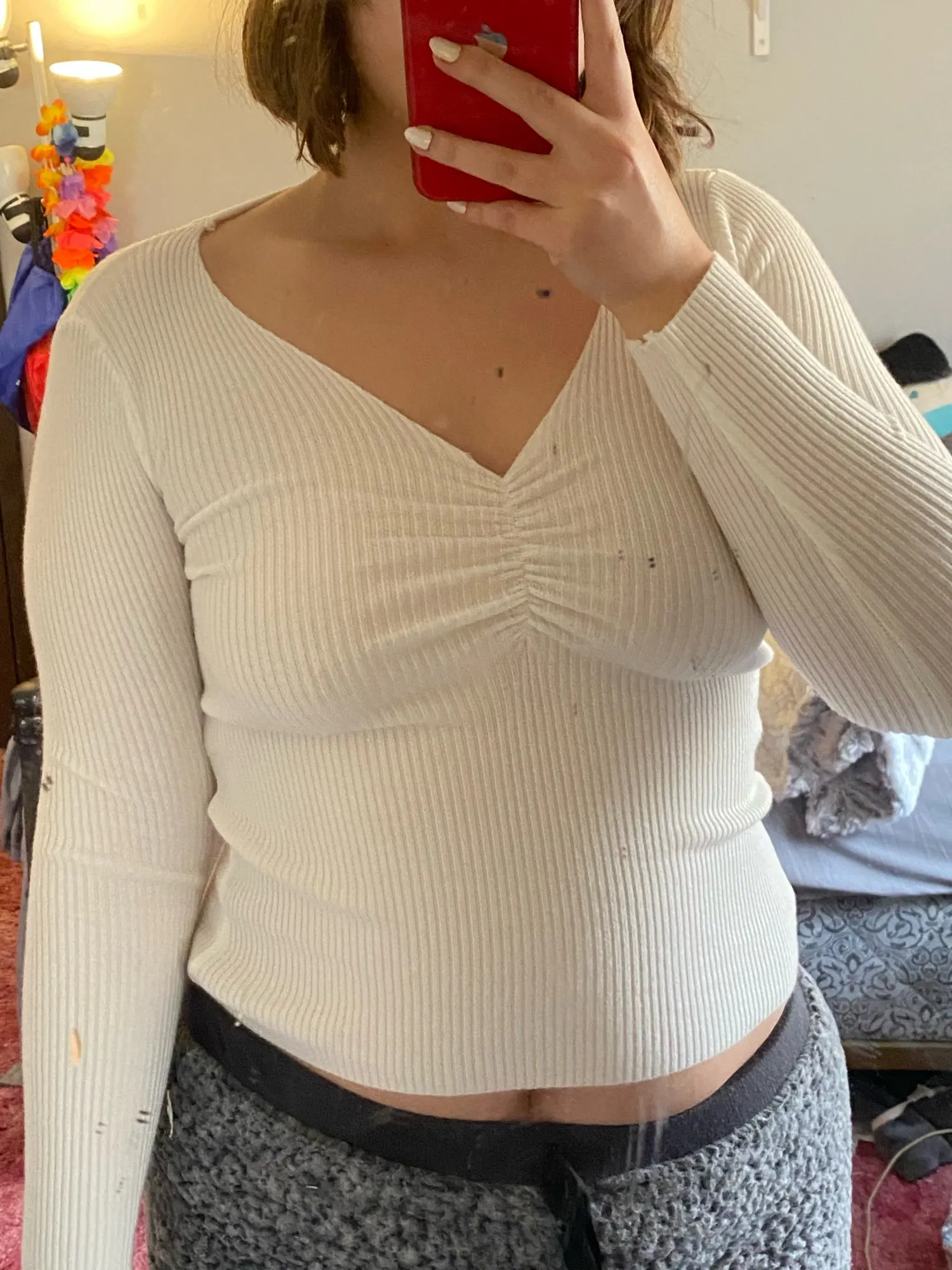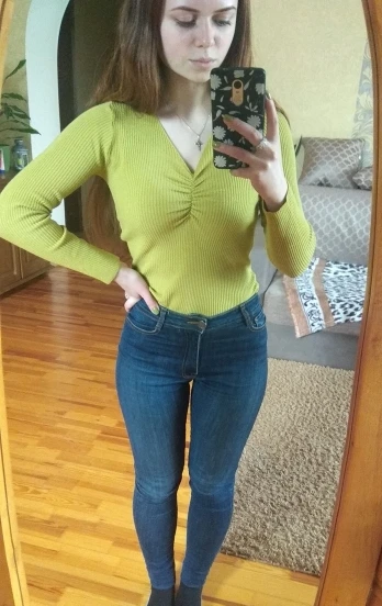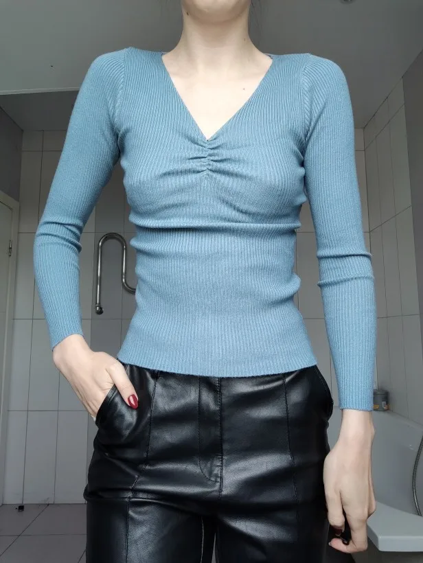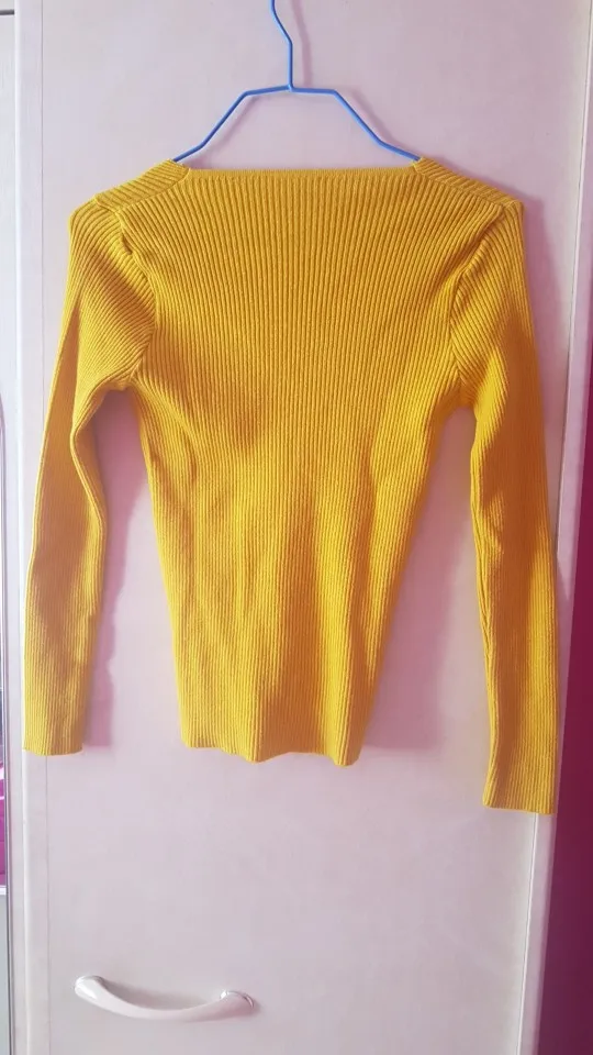 Товар не соответствует описанию и фотографиям. Ткань другая, без полос и довольно тонкая. Это тонкая водолазка, а не свитер. Вырез другой формы и гораздо менее глубокий. Носить, наверное, можно, но это совершенно не то, что я ожидала.