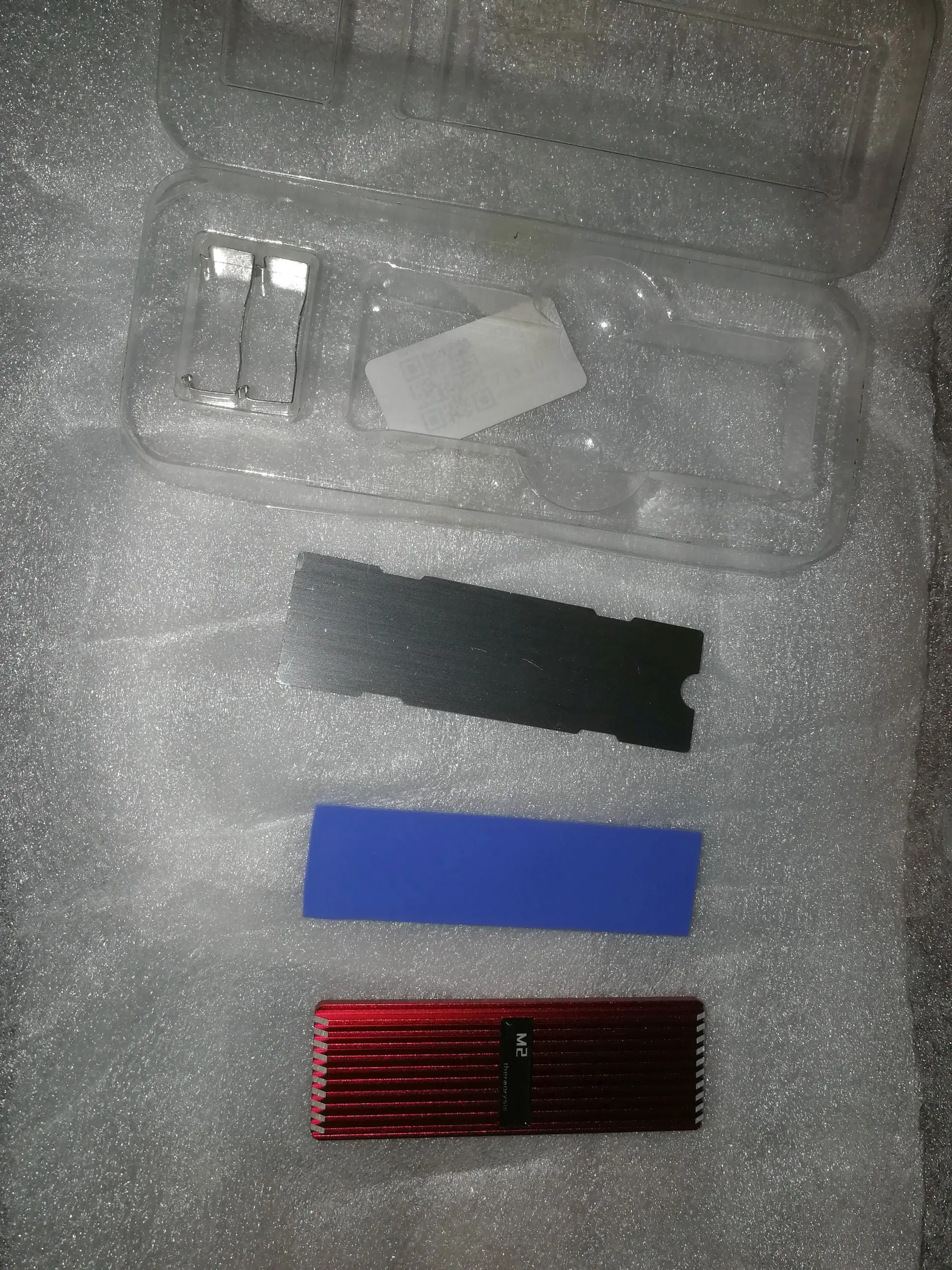 Качество хорошее. В комплекте 2 алюминиевые пластины, нижняя тонкая и верхняя с рёбрами, 3 термопрокладки (2 тонкие и 1 толстая), и 2 скобы. Диск HP EX920 прям плотно сел, с трудом защёлкнул скобы, даже с 2 тонкими. Сломать конечно не думаю что можно, но было боязно. Думаю зато контакт будет прям наиплотнейший. Температура в среднем на 10 градусов понизилась. Сам радиатор компактный, не думаю что он где либо будет мешаться, это у кого под видеокарту ставится диск, у меня в свободном месте, эстетично и практично.