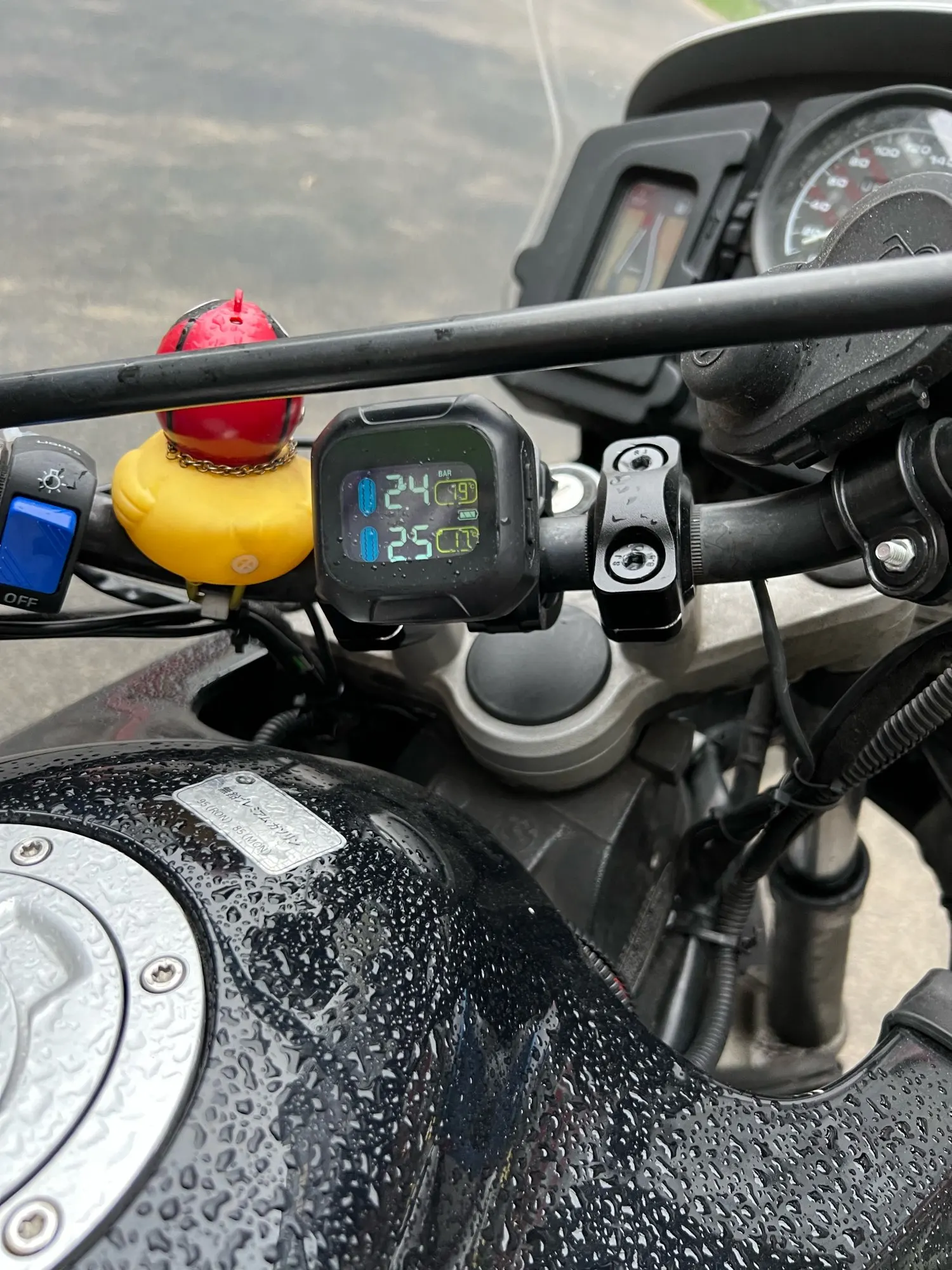 Работает нормально, давление показывает точно. Но есть нюанс, когда включается не показывает подключились датчики или нет а просто показывает последние значения. Т.е. если включить вне доступности датчиков (например дома) то не покажет что не может присоединиться а будет показывать последние давление. Но когда датчик попадает в зону видимости и подсоединяется - начинает показывать актуальное давление