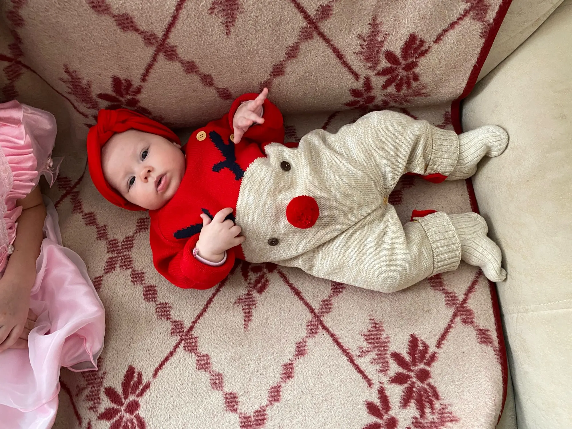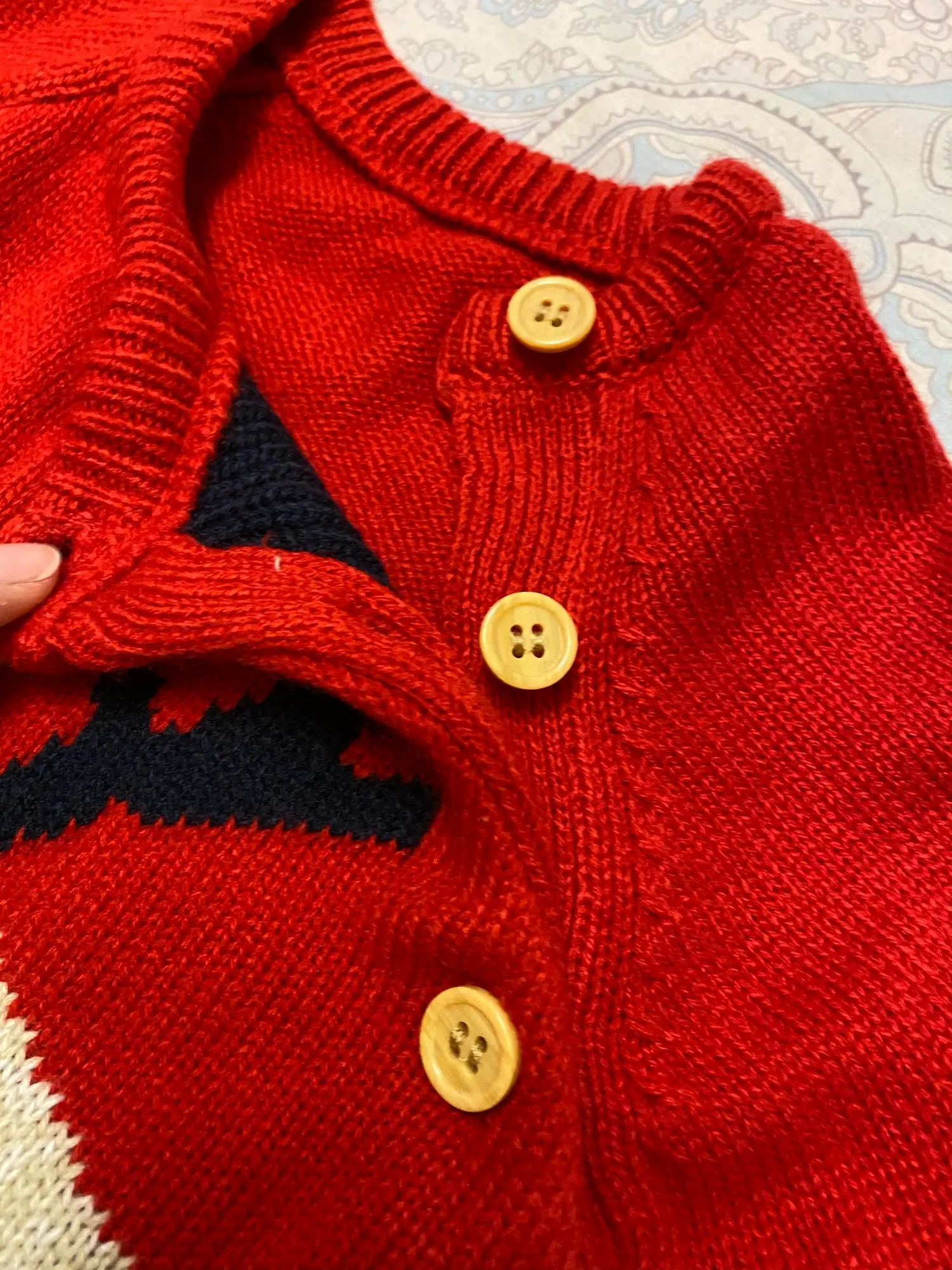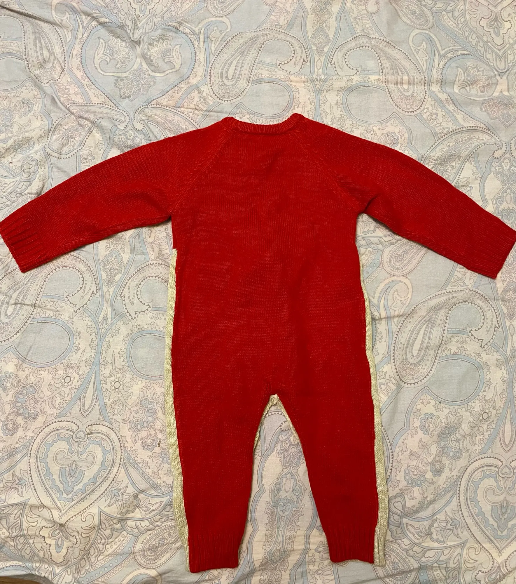 Прикольный костюмчик, мягкий, вязка плотная, но нам пришёл с небольшой дыркой под правой пуговицей (к сожалению её видно, что немного портит вид (а так всё прекрасно