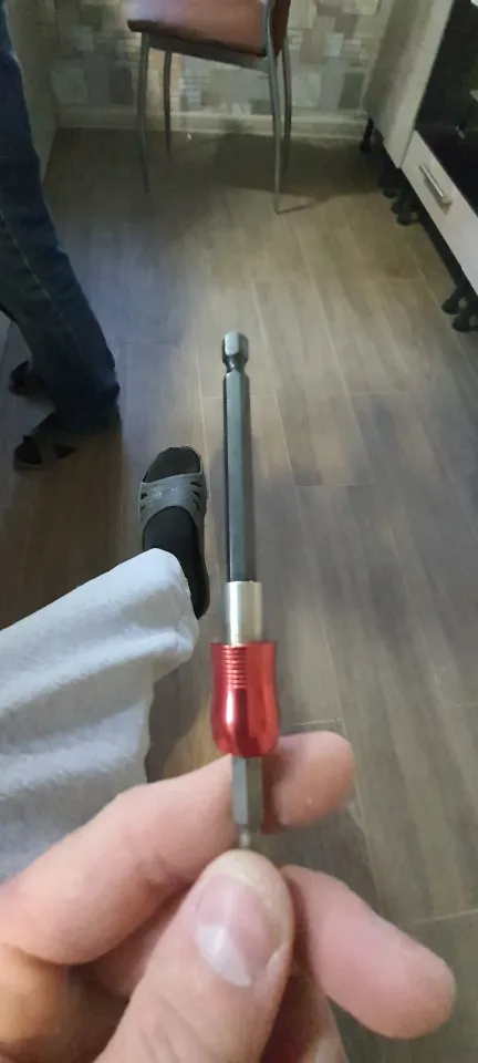 биты держит крепко, саморезы магнитит тоже хорошо, давно хотел такой держатель, красная внешняя часть свободно крутится, можно направлять за нее, очень удобно!