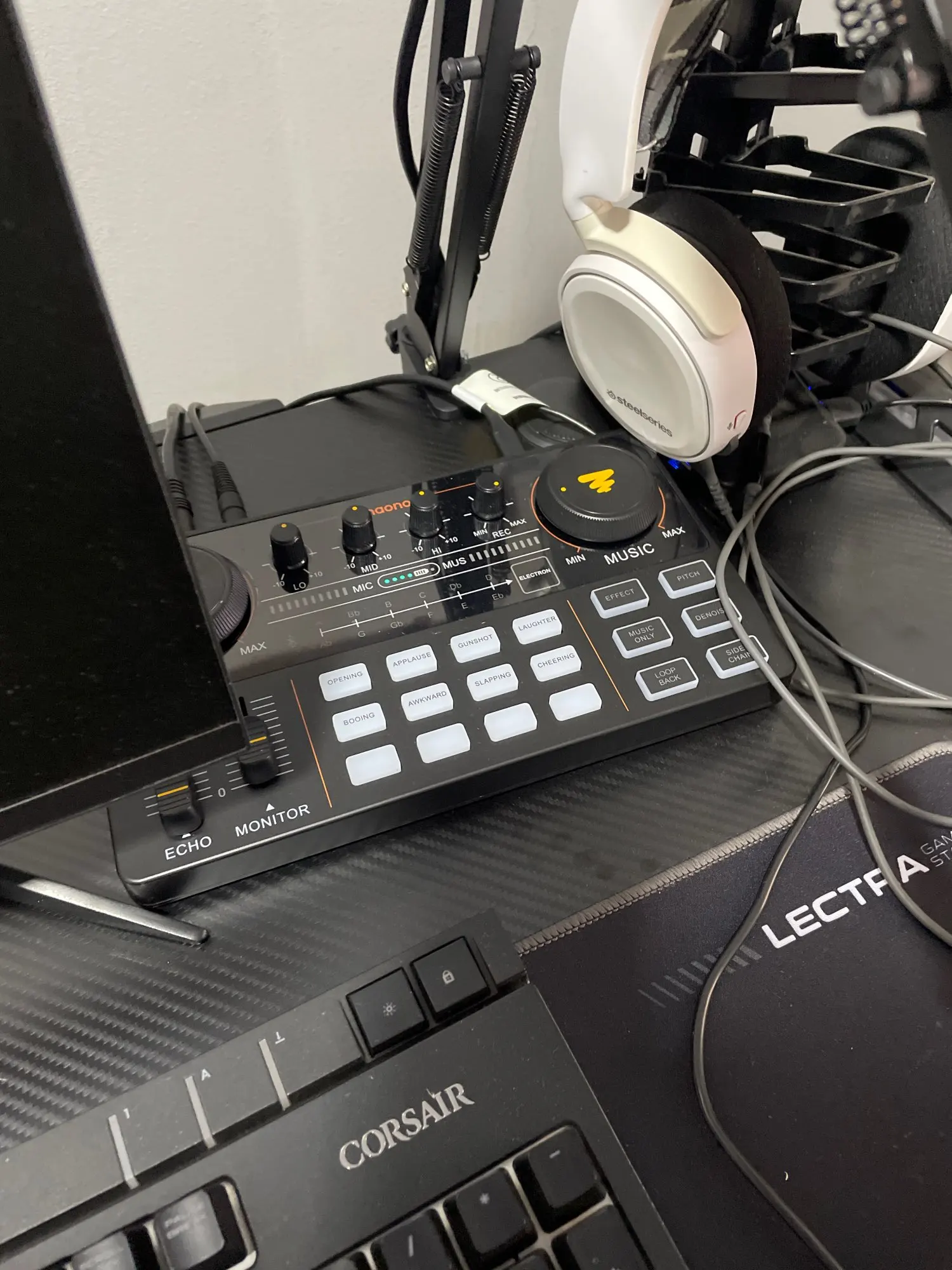 Месяц с малым шел комплект. Повреждений нет упаковано хорошо. К компу не подключал ещё. А через телефон всё отлично .Только наушники не такие как на картинке,чуть попроще . Возможно дополню отзыв.