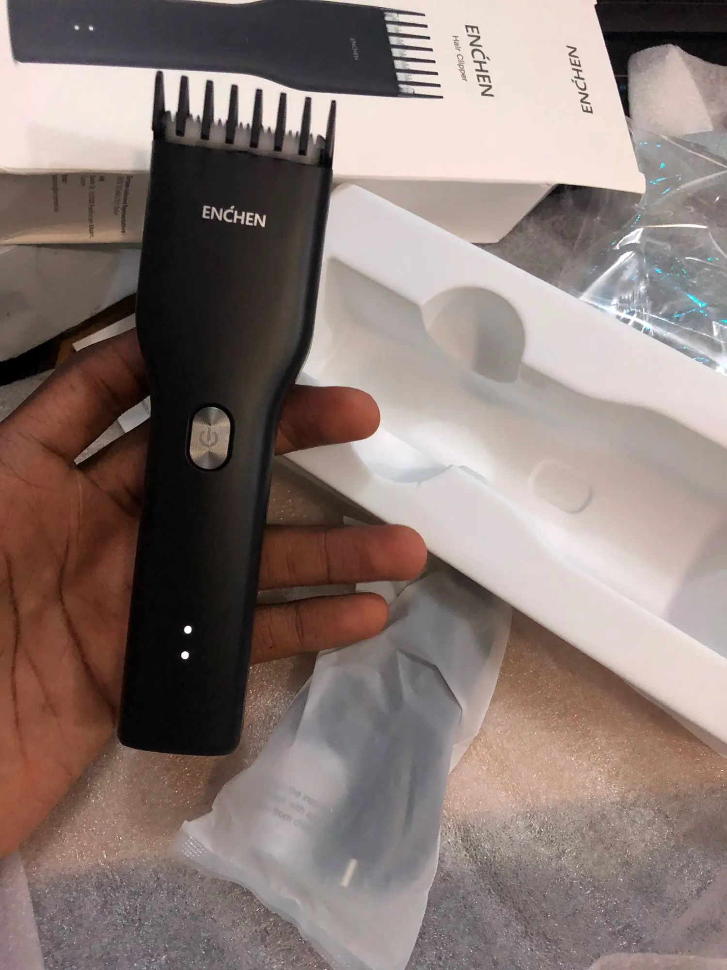Машинка лёгкая, удобно держать в руке, лезвия острые, хорошо стрижет волосы. Немного неудобно регулировать длину насадки, может только пока новая, с трудом передвигается. В целом всё нормально, рекомендую!