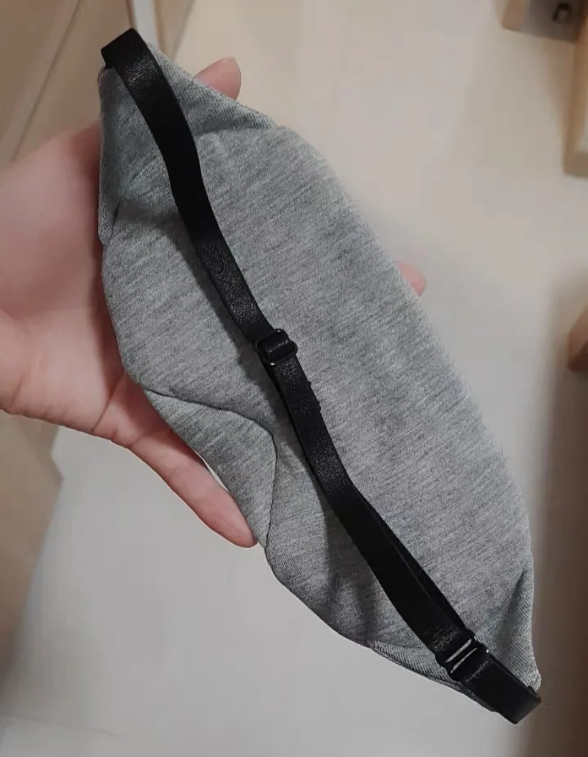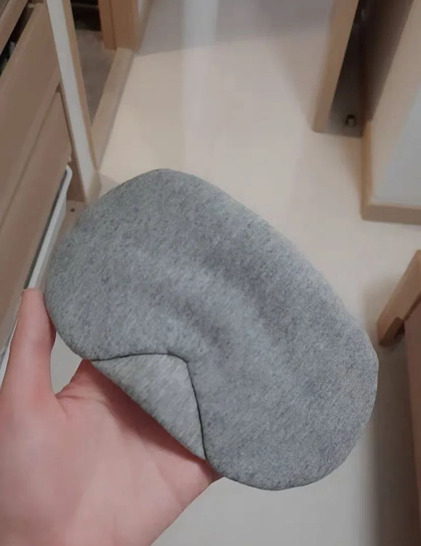 Идеальная маска для сна. Свет не пропускает совсем, не видно даже когда светят фонариком. Объемная, можно открывать глаза. Резинка регулируется по размеру головы.