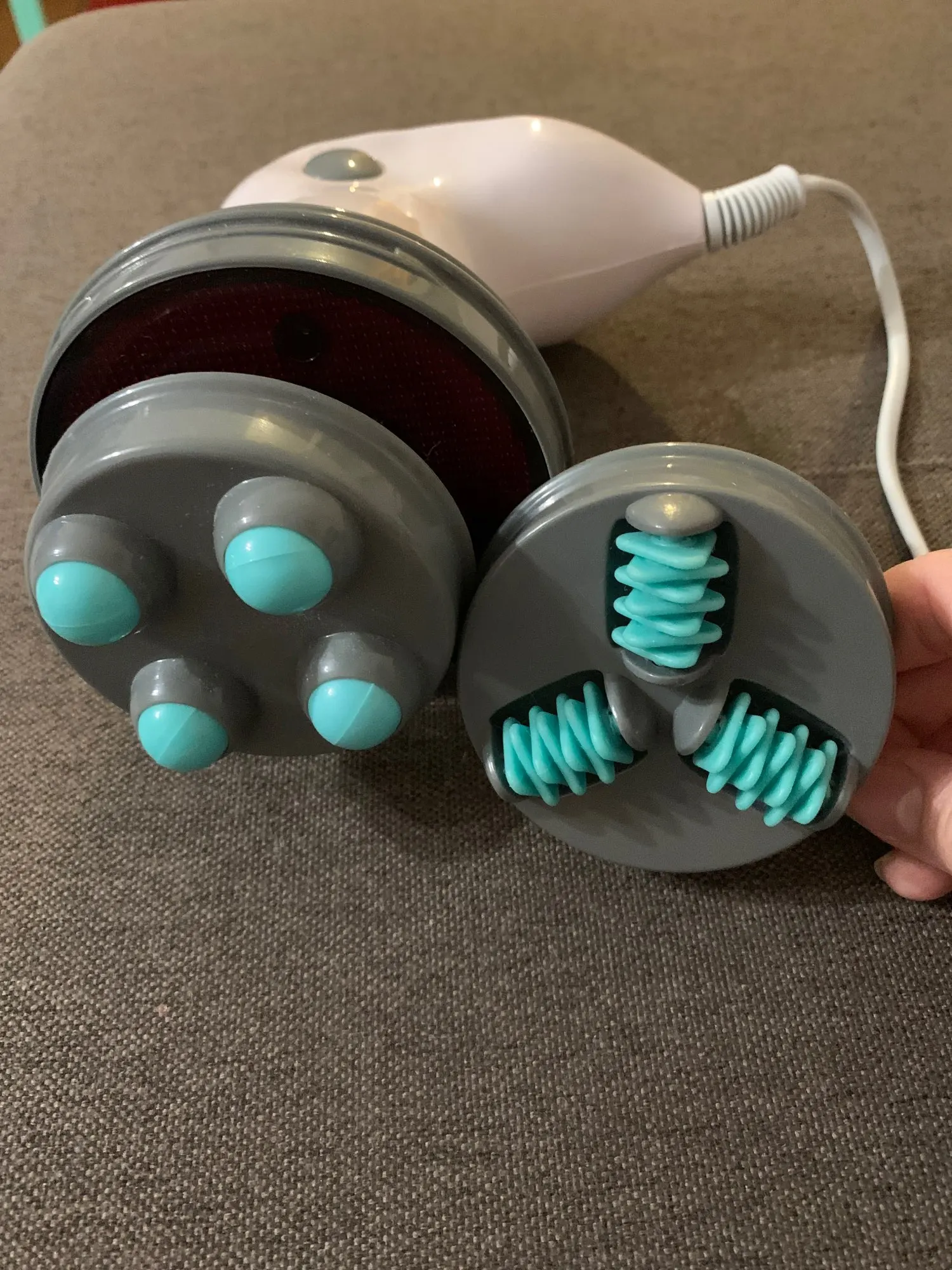 Товар соответствует описанию. Доставлен в течение двух недель. Надёжно упакован в коробку, упаковка целостная не мятая. Массажёр с тремя насадками. Маленький минус для России, он идёт с евровилкой, нужен будет переходник.