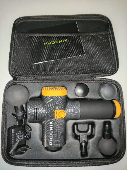 Массажный пистолет Phoenix a2 с ЖК-дисплеем, серебристый, Электрический массажер для тела, 6 головок, пистолет-массажер Phoenix MG49127