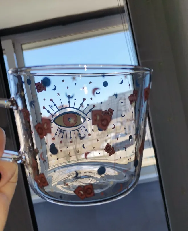 MDZF SWEETHOME 500 мл креативная шкала Стекло кружка завтрак Mlik чашки кофе чашки бытовые пару стакана воды защита от солнца с нарисованными глазами, посуда для напитков