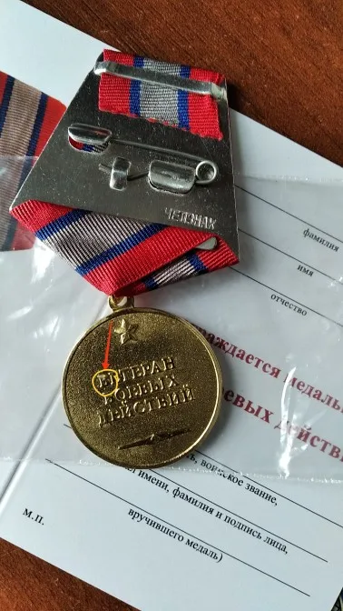 Медаль «Ветеран боевых действий» с бланком удостоверения