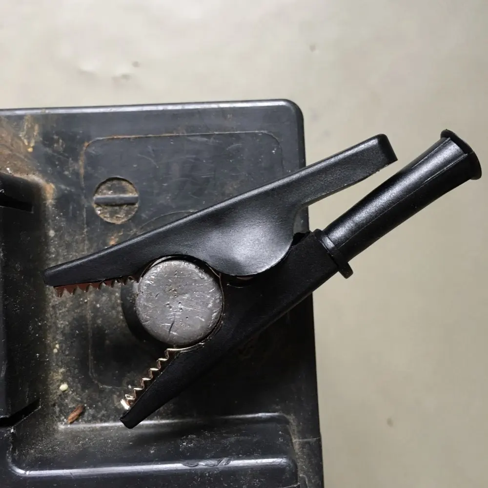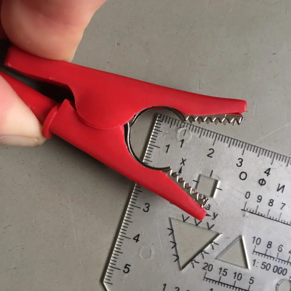 Хорошие крокодилы. Резиновая изоляция, которую пришлось немного подрезать ножницами для полного свободного раскрытия крокодилов. На минусовую клемму автомобильного аккумулятора налазят сразу. На плюсовую клемму налазят без одной части изоляции, или после доработки напильником ;)