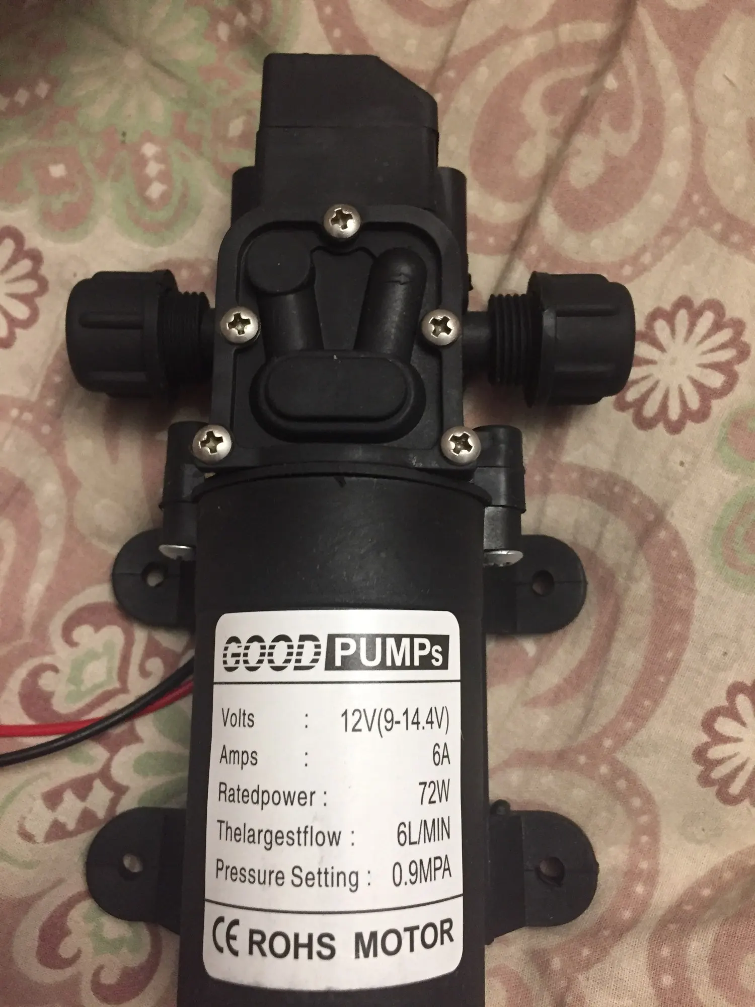 Мембранный Водяной насос высокого давления постоянного тока, 12 В, 130psi, 6 л/мин, самовсасывающий насос, автоматический выключатель