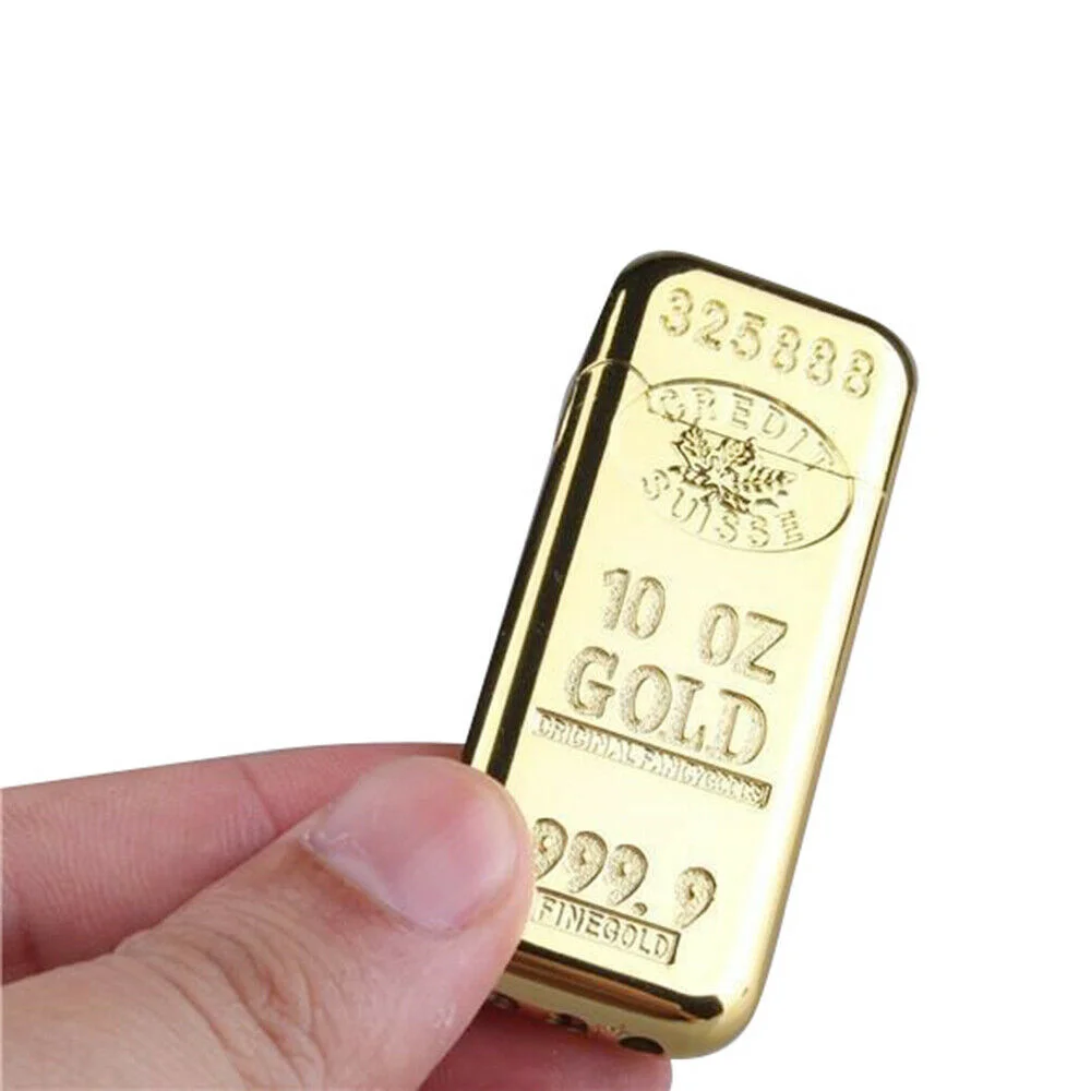 Металлическая зажигалка с золотым кирпичом, шлифовальный круг, компактная Бутановая газовая кремневая зажигалка, зажигалка для надутого м...