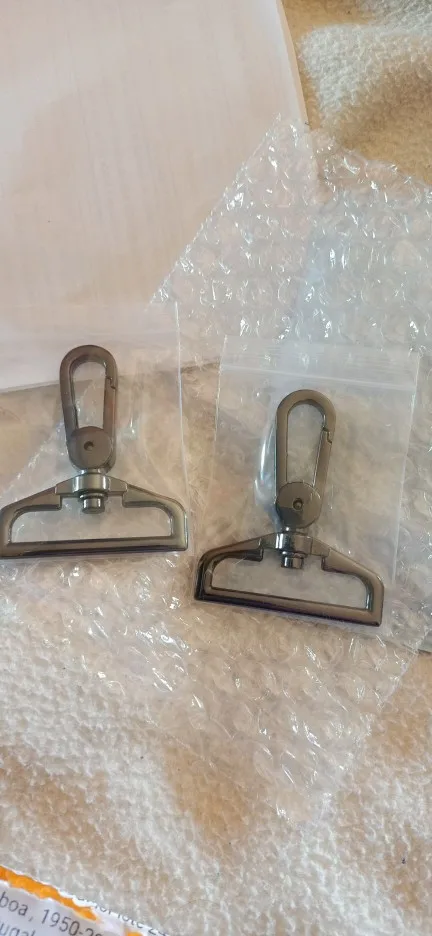 Покупал по 96 рублей. 7 января оформил заказ, 21 января получил. Московская область. Карабинчики очень понравились. Под головку, что вращается, вложена железная шайба, чтобы головка в процессе использования не провалилась и крючок не вывалился.