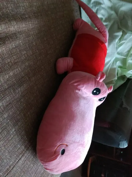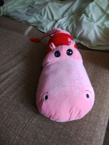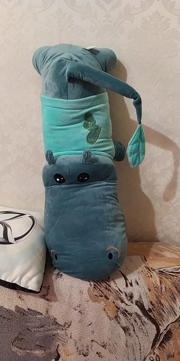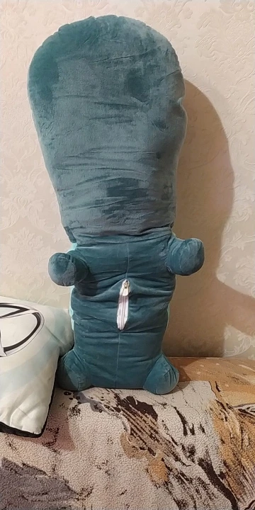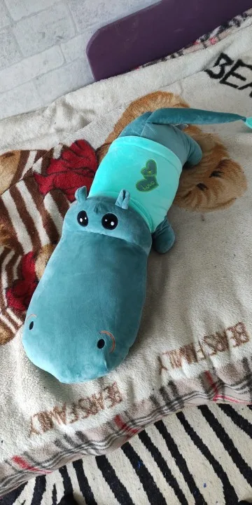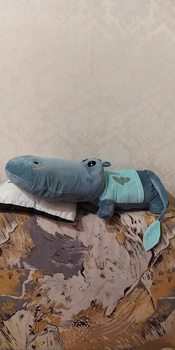 В принципе прикольный)первое впечатление- это крокодил, а не бегемот))) Из-за морды, она больше туловища))) на пузе молния, что очень удобно при стирке. Синтепон достал, бегемота постирал, засунул синтепон обратно))) Описание точное, но хотелось бегемота, а не крокодила))) на ощупь приятный, мягонький))) на фото выглядит лучше чем в реальности использовать как подушку- маловероятно