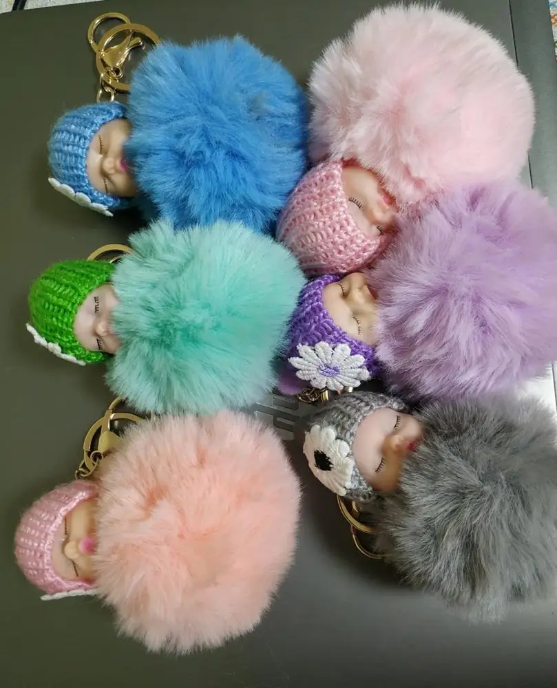 Милый пушистый помпон для спящего ребенка, плюшевая кукла, подвесная подвеска, брелок, брелок, дизайн сонной куклы, подвесная подвеска, сонн...