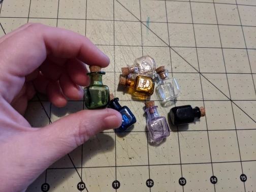 Покупала вместо игровых фишек. Они идеальные! Устойчивые, пробки подходят и закрываются плотно, второй раз уже не открыть не повредив пробку. Две скляночки пришли с трещинами, но мне было не принципиально. С продавцом не общалась.