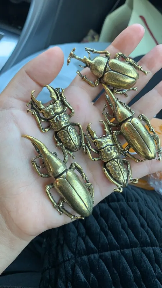 Миниатюрные фигурки жуков из античной бронзы, настольные украшения из чистой латуни для насекомых, чая, домашних животных, декоративный акс...