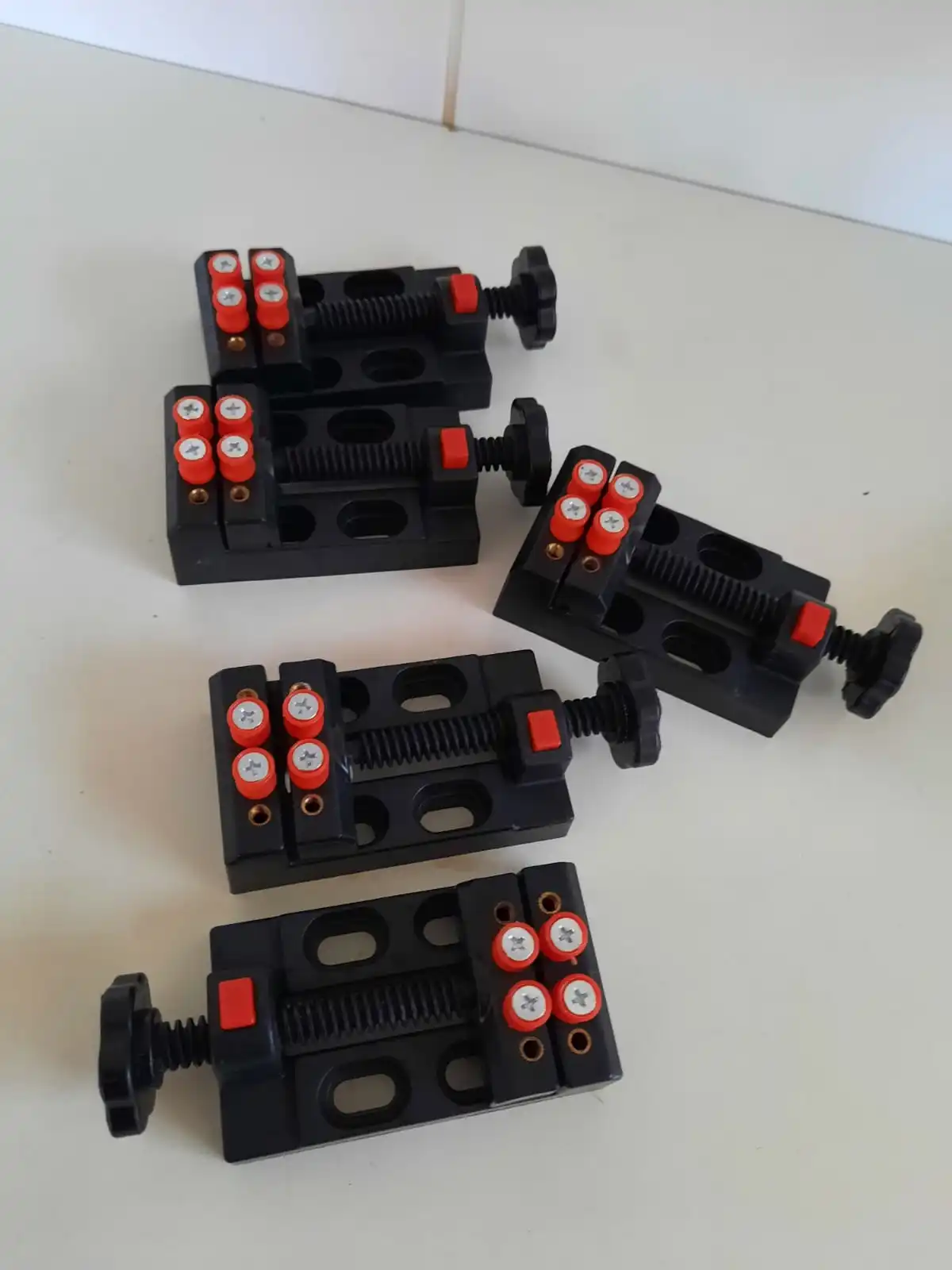 Дошло нормально, так как тиски пластиковые, то могли бы и разбить на почте. Есть кнопка быстрой настройки, что радует. Минимальная ширина упоров 4 мм. Не понятны свойства пластика, есть вероятность, что инструмент получится одноразовый. Ну посмотрим, за такую цену, все хорошо.