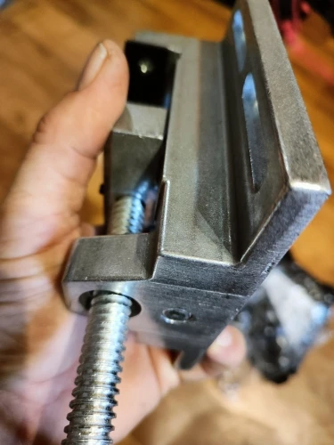 Игрушечный фрезерный столик,все из алюминия и тисочки тоже,весь болтался пришлось поджать на саласках после чего начали раскручиваться гайки удерживающие ходовые винты,поставил их на фиксатор резьбы. Ход тяжеловат у салазок моликими шкивочками крутить трудно. Если хочется нормальный столик поищите наш чугунный мне повезло за 600р. такой купить!