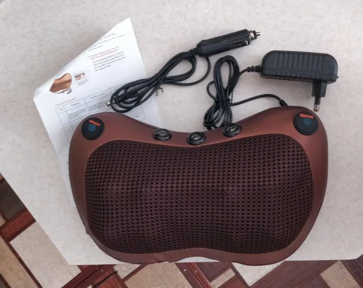 Подушка слабовата для массажа, ролики очень слабо и медленно двигаются, если их прижать , то перестают , только сидя делать его, и только цеплять на седение автомобиля.